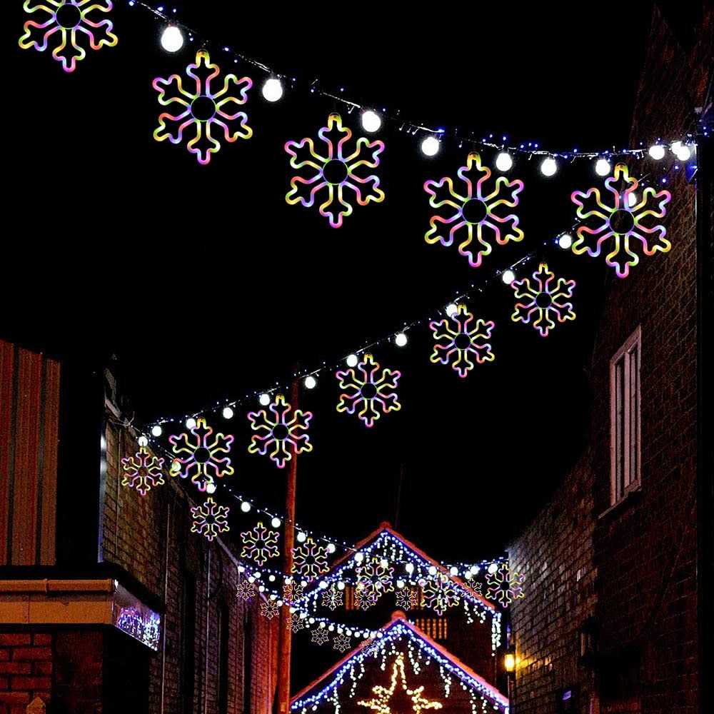 【About Christmas Decorations Snowflake Lights】The diameter of the snowflake is 11.4inch. – There are 36 small led lights on each snowflake.4 pieces snowflake lights with 144LEDs . Plug cable length:16.4ft. Light up Your Christmas with this Christmas snowflake string lights! NOTE:Please press and hold the round button on the controller until the green light disappears . The timing function is canceled !!! 【8 Lighting Modes&Timer and Waterproof】: The christms decorations snowflake lights have 8 different lighting modes: steady on,combination, in waves, sequential, slo-glo, chasing/flash, slow fade and twinkle/flash. IP44 waterproof lighted christmas decorations are perfect for indoor and outdoor decorations. 【Application】: Offers decorative led christmas snowflake lights for party,buildings, wedding ,windows, walkways, patios, gardens, fences, porches, restaurants, clubs, bar etc. – High flexibility, temperature sustainability, and UV resistance 【Use Safely &Easy to Installation 】29V low voltage plug with UL certified to ensure safety use. – Plug and unplug the power directly to turn on and off. – Easy to be hung on a tree or roof to make a decoration to your yard. – When you installation, Just hanging the big snowflake on an exterior wall, tree or eaves. – It’s great for party,yard indoor outdoor christmas decorations. Christmas Decorations snowflake Lights, 4pcs snowflake LED Lights for Christmas Tree and Holiday Seasonal Decoration /b br This christmas snowflake lights work great with christmas trees,windows and outdoor christmas decorations. You can also hang the snowflake lights under the eaves, gutter or porch, place them on fences and stair posts, illuminate windows, arrange on bedroom shelves or furniture, etc. Light up Your Christmas with this snowflake string lights! br Perfect indoor outdoor decoration for Christmas tree, wedding, New Year, holiday, birthday, party, festival, bedroom, backdrops, porch, patio, house, stage, etc. br Specification: /b br – Total number of bulbs: 144 br – Total number of bulbs on each snowflake: 36 led br – Size: Snowflake Dia 11.4inch,, plug cable length 5m/16.4ft br – Voltage: 29V safe low voltage (Includes UL plug-in transformer) br – Power source: Plug-in electric br – IP44 Waterproof. br NOTE:Please press and hold the round button on the controller until the green light disappears . The timing function is canceled !!!
