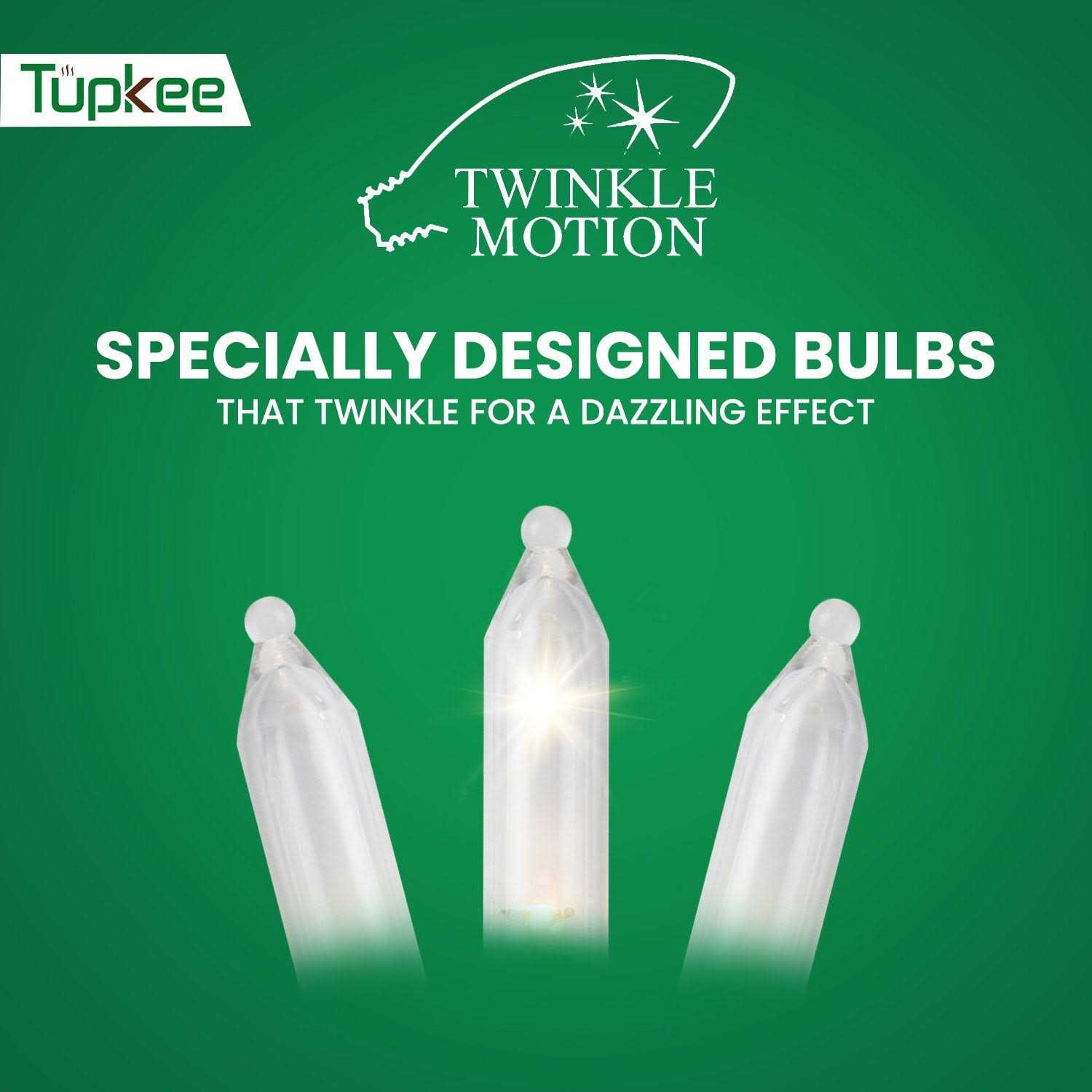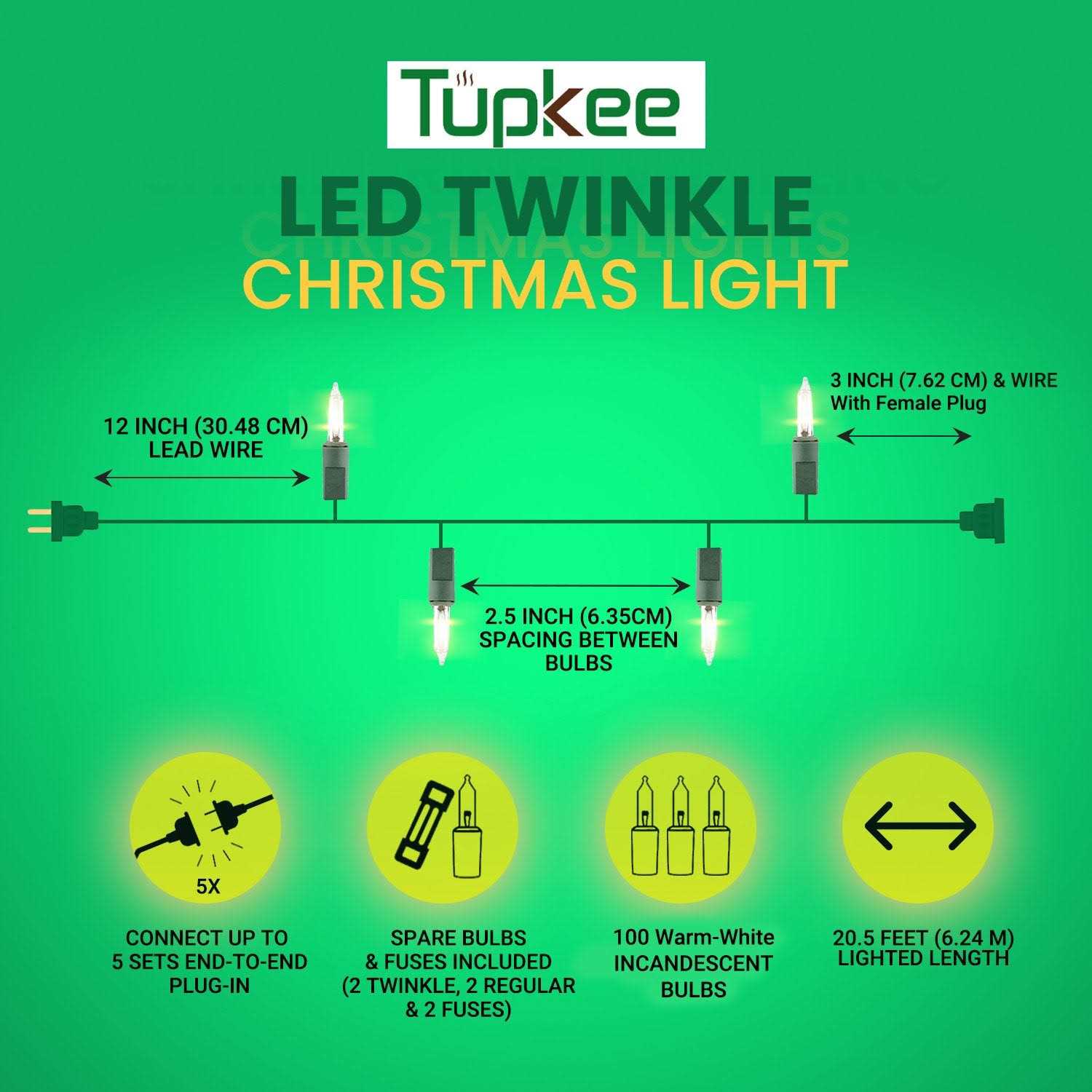 Only 16 out of 100 light blinks (every sixth light), while leaving 80% of the bulbs steady-on, each of these 16 bulbs twinkles randomly independent of the others, and not at once, opposed to the Traditional Christmas Lights that have all the bulbs blinking and they are all blinking at the same time, giving them a flashy look ADD SHIMMER TO YOU LIGHTING DISPLAY – These specially Designed bulbs that twinkle randomly create a beautiful dazzling sparkle effect, that is serene and calming, rather than a steady on-and-off flashing typical Christmas Lights PERFECT TOUCH TO THE CHRISTMAS TREE – These warm white mini twinkle Christmas lights, create a cozy feeling and Christmas spirit, watching these lights twinkle is heartwarming HIGH END QUALTY – Longer lasting super bright bulbs – If one bulb burns out, the others remain lit – UL Listed – Plug-In -Safe for Indoor & Outdoor Use LIGHT LENGTH – 24.75 Feet (7.5 m) lighted length – Connect up to 25 sets End-to-End (Total 618.75 Feet – 188.59 m) – 100 LED Warm White bulbs twinkling lights Unique Product