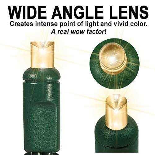 Christmas Lite Co. 24 ft. String Lights – (70) Wide Angle LEDs – Warm White Deluxe – 4 in. Spacing – Omni-Directional – Green