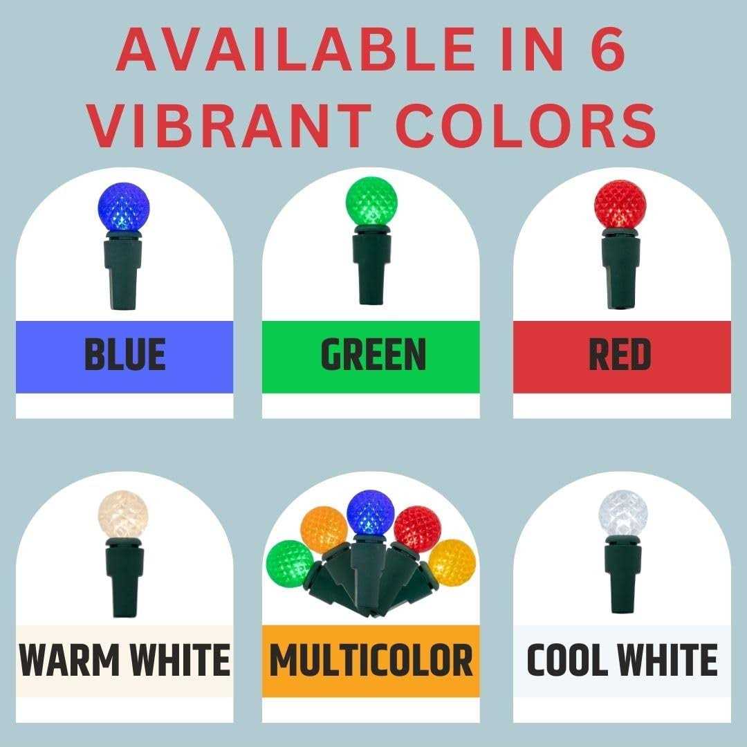 HIGH QUALITY – LEDs are about 90% more energy efficent than traditional incandescent lights, ultimately saving you money on your home electric bill. Each bulb has a lifespan of up to 100,000 hours. But more importantly, if one bulb goes out, the remaining bulbs on the strand will stay lit, unlike traditional Christmas Lights. STUNNINGLY BEAUTIFUL – G12 “Raspberry” LED lights are currently the fastest growing types of mini lights in popularity! There’s a great reason for that. They are absolutely beautiful on Christmas trees, outdoor landscape, or home decor. DIMENSIONS – These G12 LED string lights come in individual sets of 60 acrylic globe bulbs that are spaced 4 inches apart on green wire, making each set about 20 feet long. HIGHLY SAFE – Each set of lights is tested and backed by a UL Certification, and approved for indoor or outdoor use. You can safely connect up to 45 sets of these extremely energy efficient string lights end to end. WEATHERPROOF – These lights make excellent decorations for all seasons, indoor or waterproof for outdoor, rain or shine. Our “Raspberry” G12 LED string lights look especially stunning in person! They are great for any use, but they are especially eye catching when wrapped around the trunks of trees or in bushes, garlands or wreaths. Each set is 20 ft long, with 60 bulbs spaced 4 inches apart. They are waterproof, and extremely energy efficient. In fact, if you’re feeling like Clark Griswold, you can connect up to 45 sets together end to end! Also, each bulb can last up to 100,000 hours, but if one bulb goes out, the rest of the strand will not be affected like the retro traditional Christmas lights.