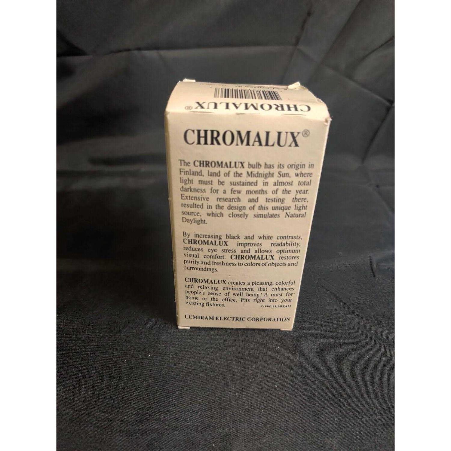 Chromalux bulbs mimics natural light Full-spectrum, 150 watt bulbs are 30% more efficient Reduces eye stress and promotes a relaxing environment Chromalux Full Spectrum Lights Bulbs take indoor lighting to the next level. The closest indoor light to natural sunlight, these bulbs contain chromatic balance and have color-discriminating qualities. This creates visual comfort, which helps reduce eye stress. Chromalux Full Spectrum Light Bulbs create a pleasing and relaxing environment that helps you concentrate longer with increased comfort and visual acuity. Long-life, averaging 5,000 hours.