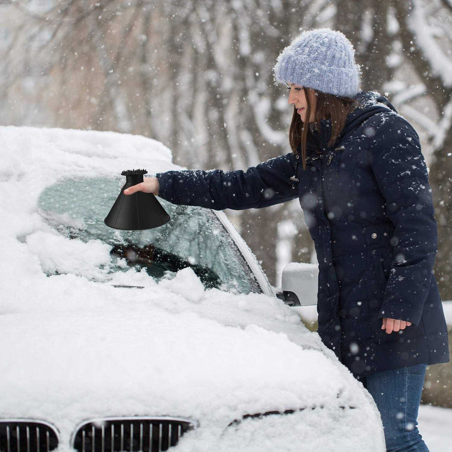 MAGIC ICE SCRAPER: Easy to scrape off that pesky layer of frost/ice/snow, it does cover a larger area than traditional ice scrapers, and didn’t scratch windshield. PREMIUM MATERIAL: Magical car ice scraper for windshield is made of high-quality ABS plastic, the pronged side harder, not only won’t scratch the windshield but also to break the ice. EASY TO USE: You can scrape off the ice with almost no effort without warming up the car, round ice scraper allows you to hold it in your hand and apply direct pressure, and don’t worry about hand injuries. EASY TO CARRY: Cone-Shaped Windshield Ice scraper longest diameter is 5.7 inches, height is 4.5 inches, it doesn’t take up a lot of space in the trunk and can be placed in any corner. PERFECT GIFT: Magical ice scraper can easily remove the ice caked on the car windows for most cars, so it can be used as Christmas, New Yea and birthday gift to friends and family who have cars.