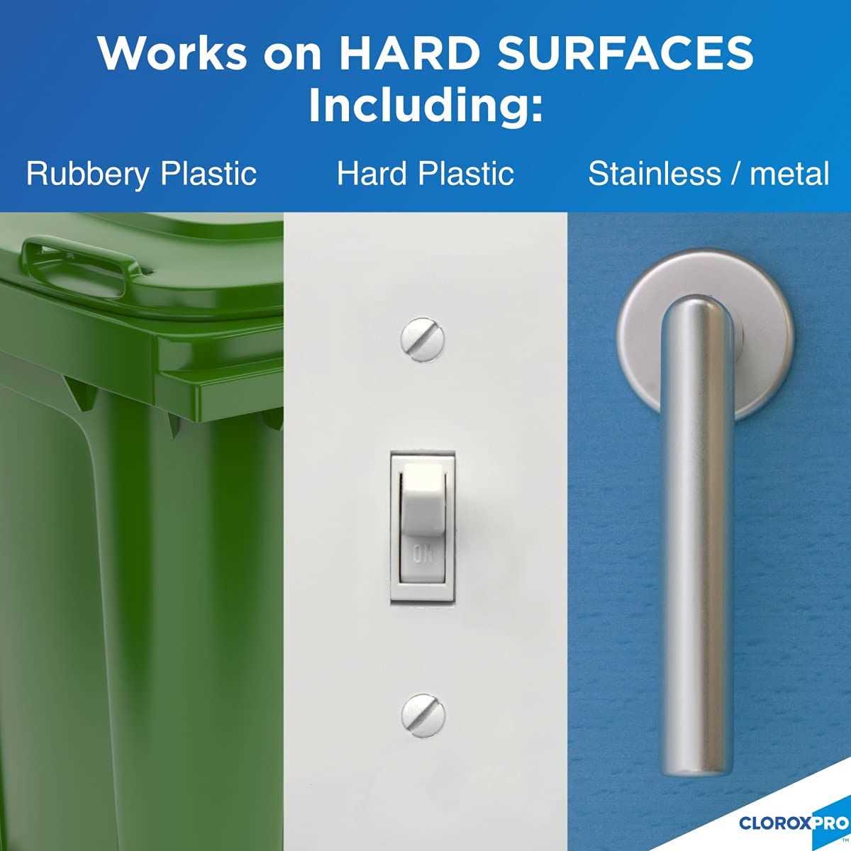 Hand Sanitizers by CloroxPro. Details:Clorox 4-in-1 Disinfectant and Sanitizer lets you disinfect, sanitize and reduce allergens with a single all-purpose aerosol spray without the need to preclean. This powerful cleaner disinfects hard surfaces with 24 EPA-registered kill claims, and sanitizes soft surfaces in as little as 30 seconds. It even kills odor-causing bacteria in the air, and leaves behind a refreshing citrus scent. Clorox 4 in One reduces pet dander, dust mite matter and cockroach matter allergens that can trigger allergies and asthma. It is ideal for offices, daycare centers, schools, hotels, restaurants and other commercial facilities.