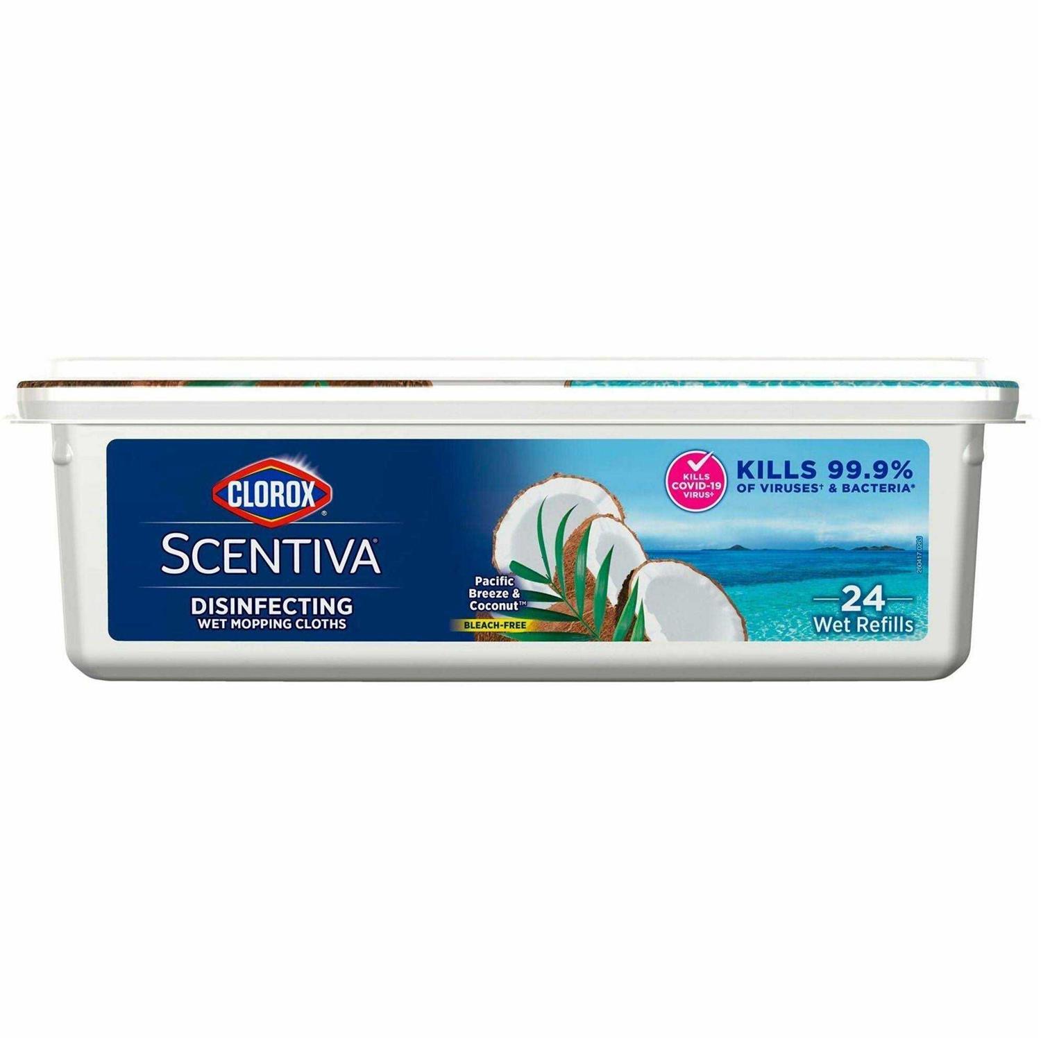 Clorox Scentiva Wet Mopping Cloths, Disinfecting, Pacific Breeze & Coconut – 24 refills [2 lb 10.9 oz (1.21 kg)