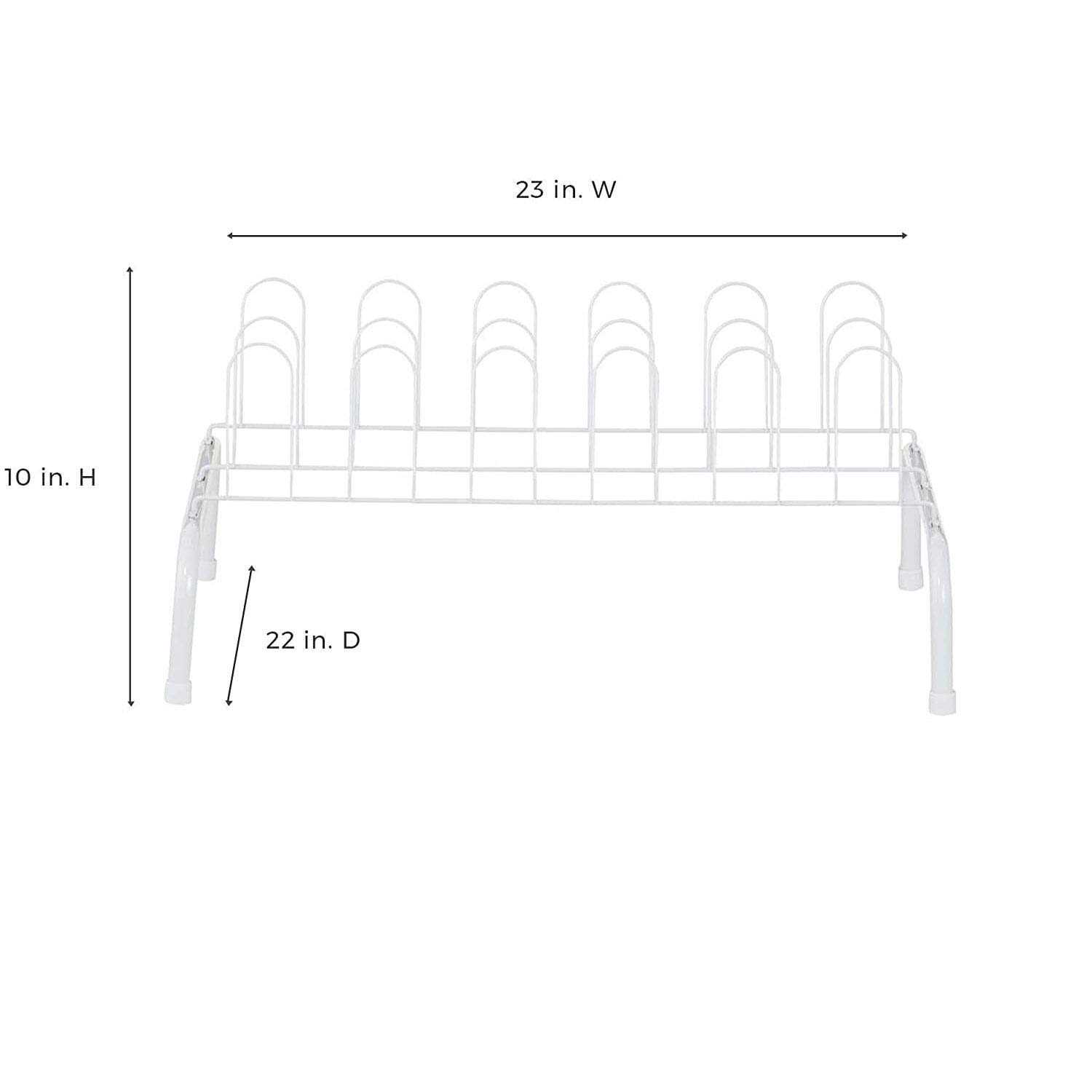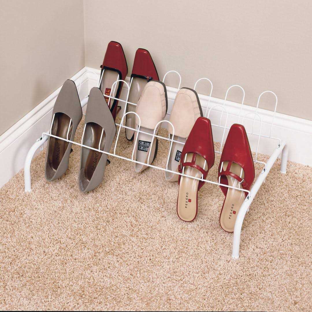 If your closet is cluttered with shoes this ClosetMaid Freestanding Shoe Rack will help you keep your shoes together and organized. With the easy to assemble compact shoe rack, you can add the rack to your closet, entryway, garage, and more. Made with heavy-duty epoxy-coated steel materials this sturdy, lightweight shoe stand is the perfect solution for storing flats, sneakers, slip-on, and more. With the ability to hold up to 9 pairs of shoes it makes for the perfect rack for the whole family. Do not worry about scratch the walls because the rack includes end caps to protect your space. ClosetMaid has made it easy to stay organized with a convenient shoe organization solution at your home. Unclutter your shoe collection with the ClosetMaid 1039 Freestanding Shoe Rack in White. Be able to organize your shoes while getting that needed space back in your closet.