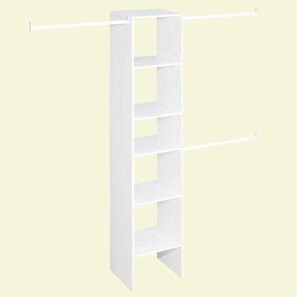 With both shelf space and hanging space the ClosetMaid Selectives 16 in. White Custom Closet Organizer is a perfect start to redefining closet storage. Featuring 3 closet rods that expand from 30 in. to 48 in. to fit a variety of closet sizes; this starter kit offers durable laminate construction with a white finish for years of sturdy use. The 6 shelves help organize and increase the usable space in your closet perfect for shoes clothes toys or accessories.