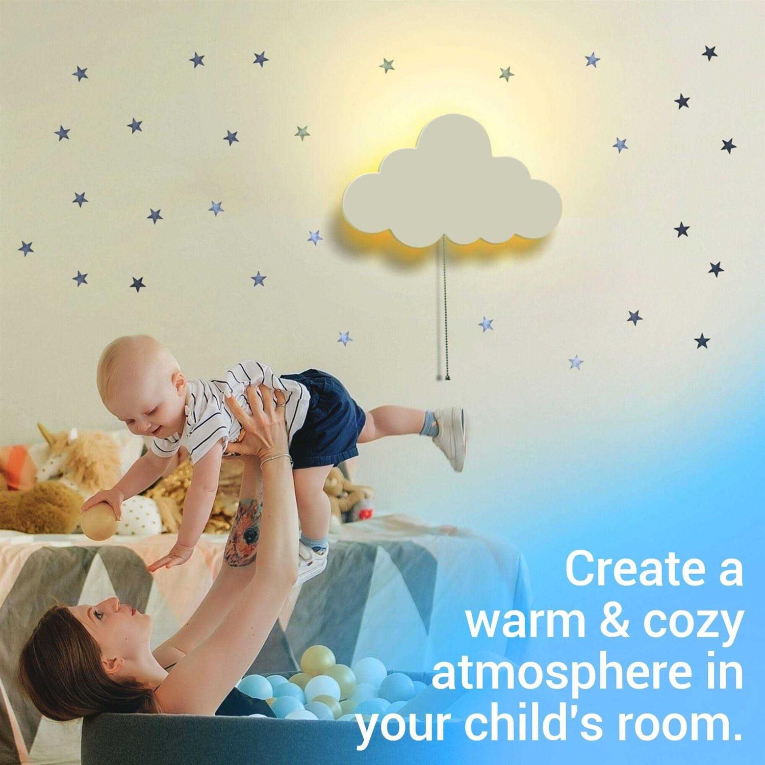 Night Lights by Tip perk. Details:Cloud Light Wall Lamp for Nursery The Cloud Light wall lamp for nursery is a delightful addition to any child’s room. With its cute and whimsical design, this floating cloud-shaped lamp adds a touch of magic and charm that both children and parents will love. Powered by batteries, it is easy to install without any cords or wires, making it a hassle-free option for parents. The lamp emits a soft and soothing light, creating a cozy and calming atmosphere for babies and children. It is versatile and adaptable, and can be used as a night light, a decoration, or a focal point in the room. Made from high-quality materials, this lamp is built to last, and its LED light source is energy-efficient and safe for children. Its sturdy construction ensures it will withstand the wear and tear of daily use.
