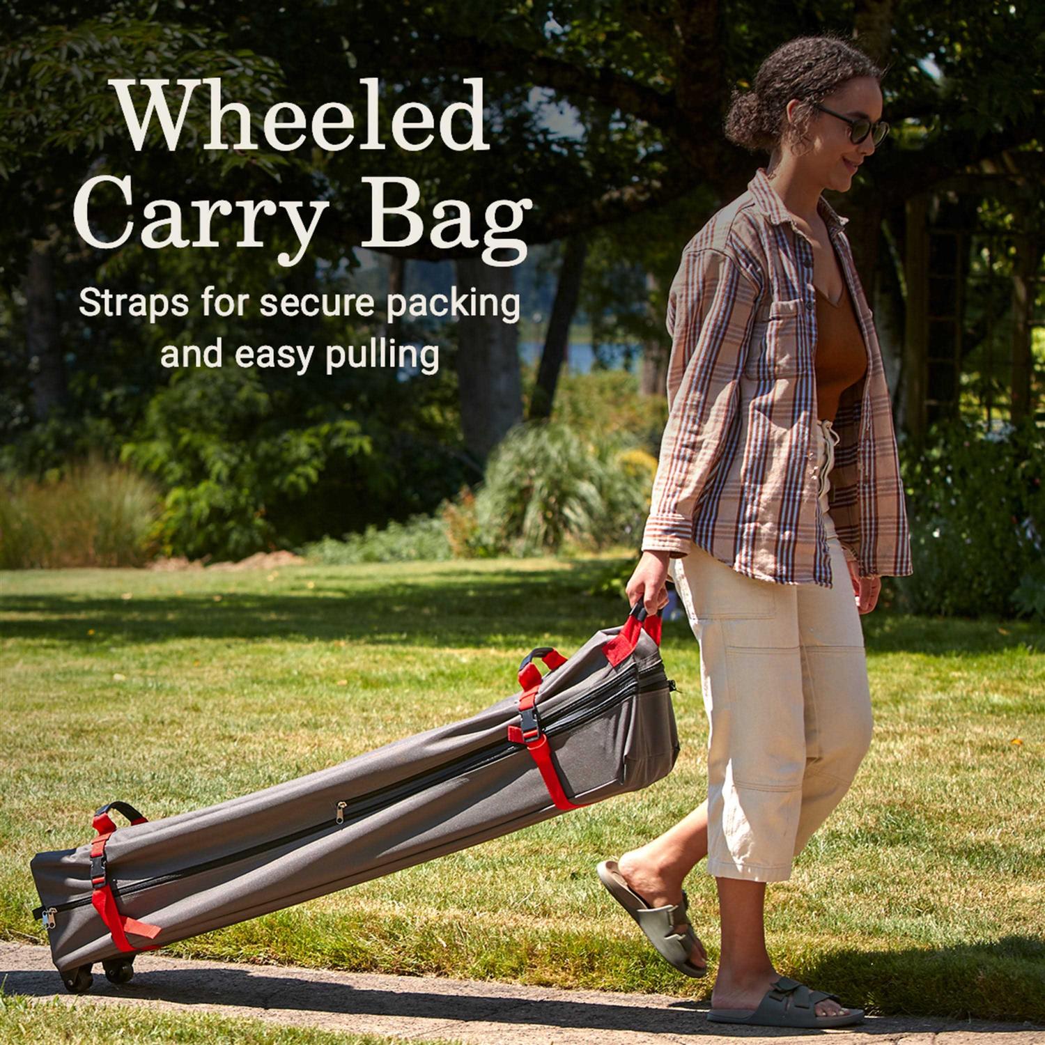Kick-start your adventures with the Coleman Oasis outdoor canopy, a perfect companion for camping, festivals, sports events, tailgates or simply relaxing in your backyard. This sun shelter tent provides ample shade with its overhanging eaves. Setting up is a breeze with the one-push center hub with OnePeak technology. Despite its robust steel frame capable of withstanding winds up to 35 mph, its Comfort Grip feature ensures pinch-free setup and takedown. This canopy not only offers UPF 50+ sun protection, but also ensures comfort with a vented roof for heat release. Transporting this canopy, weighing 47.4 lbs., is uncomplicated with the included wheeled carry bag.