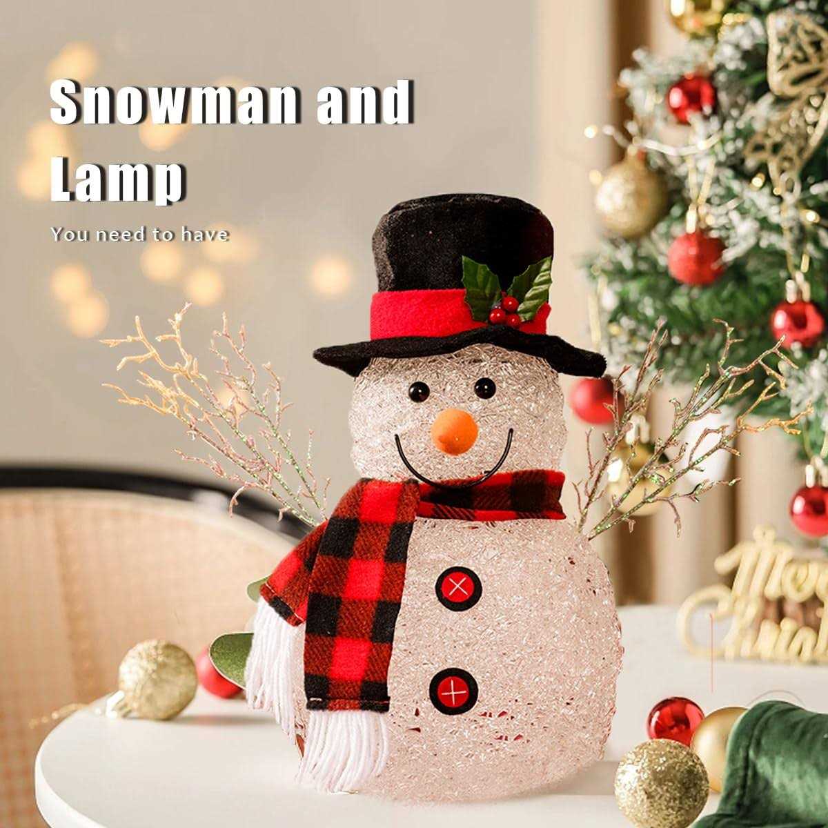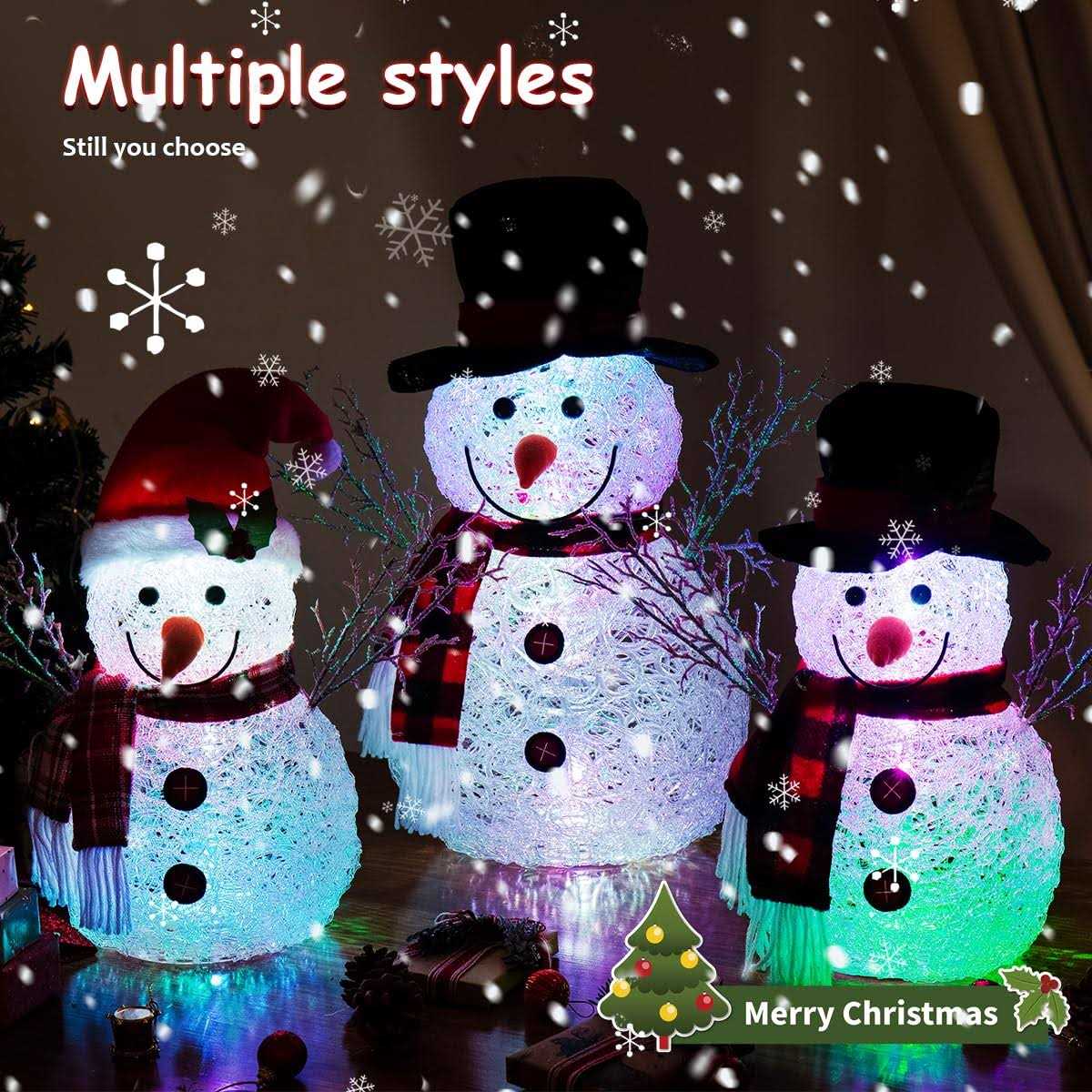 Color Changing LED Snowman, 13.4 inch Pre-Lit Light Up Snowman, 7 LED Lighted, Acrylic Christmas Figure Snowman, Christmas Interior Decorations.