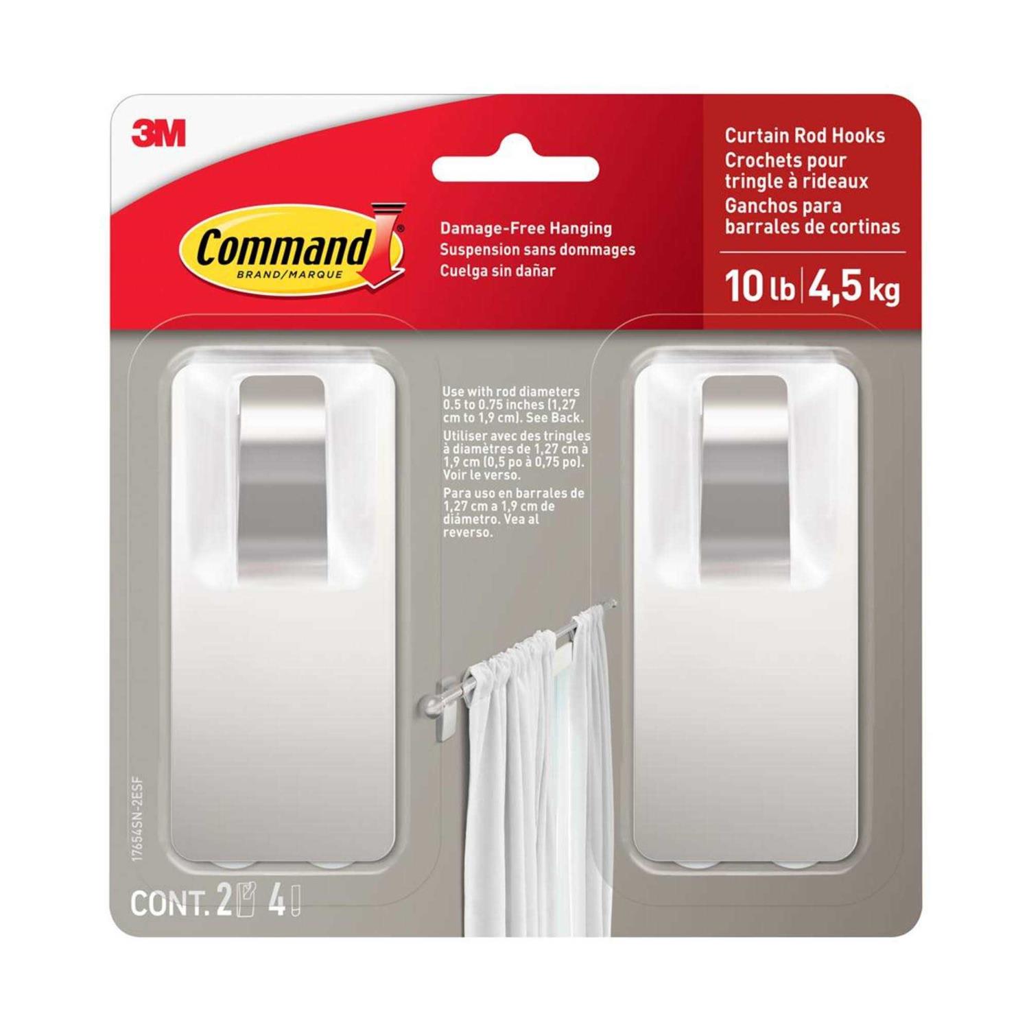 Command Curtain Rod Holders help you easily decorate or update you space. They are easy to install and remove cleanly without leaving behind unsightly holes or residue. The modern design and finish can complete your room with both style and functionality. Fits standard. 5 to .75 rod curtain rods.