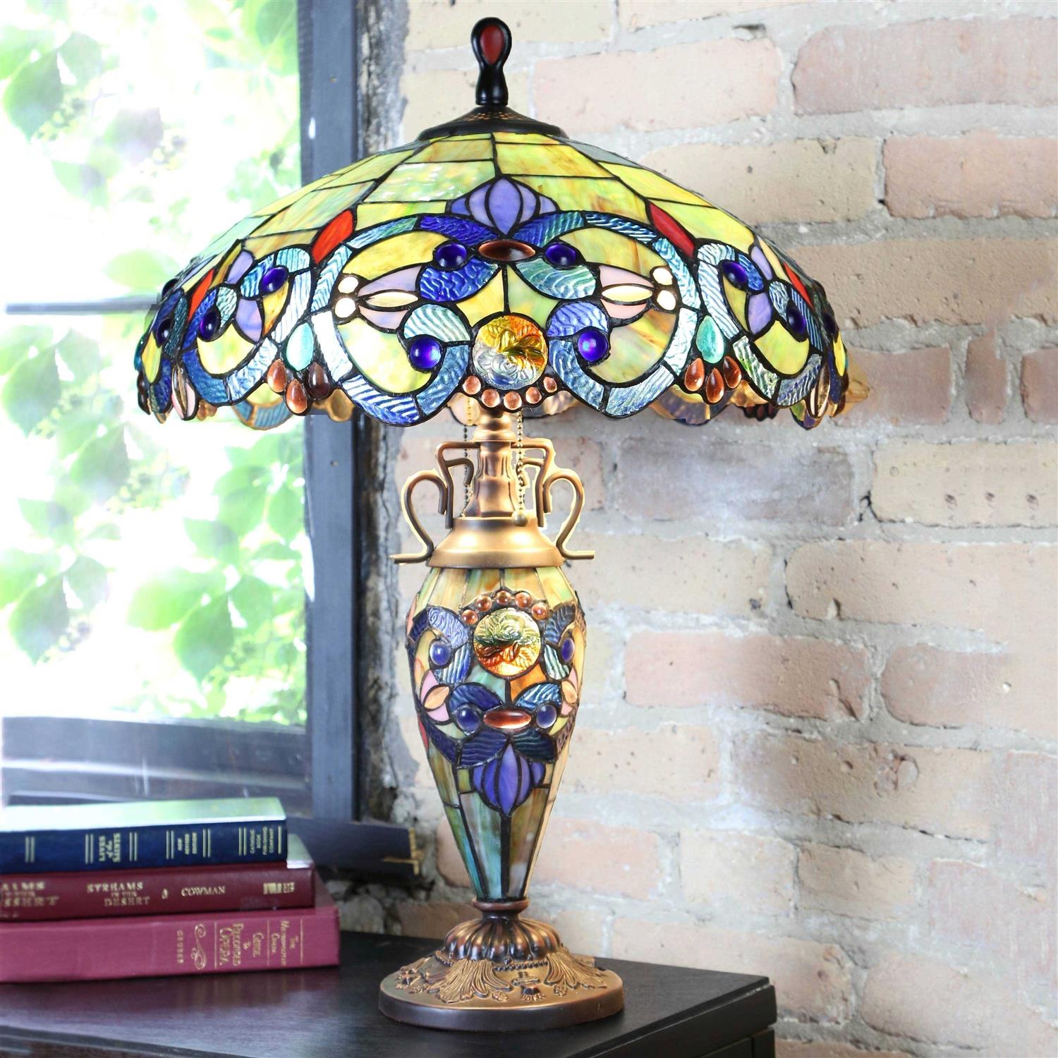 Copper Grove Glenbow 26-inch Tiffany-style Stained Glass Victorian Double-lit Table Lamp – Blue