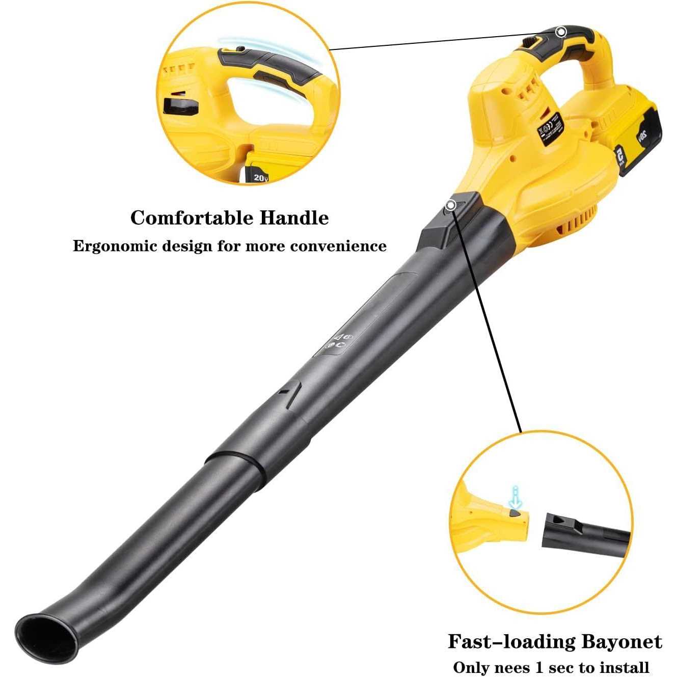 - Cordless leaf blower is designed for dewalt 20V Max lithium batteries.