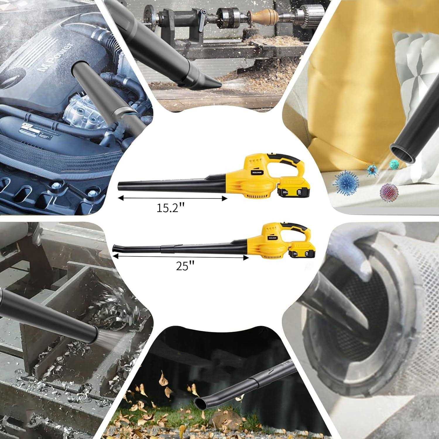Leaf Blowers by Rozlchar. Details:Specifications Cordless leaf blower is designed for dewalt 20V Max lithium batteries. The lightweight leaf blower helps free your movement to everywhere for cleaning work in the garage, patio, porch, sidewalk, car, balcony, and deck. The portable leaf blower cleans leaves, flower, debris, dust, grass, snow, and pine. Weight: 2.