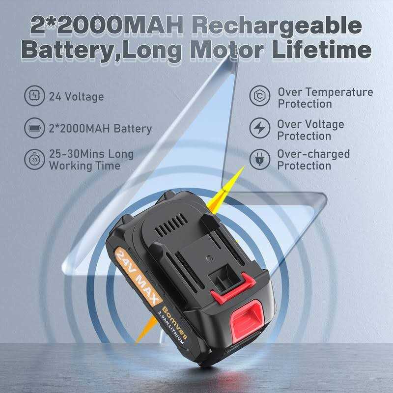 Bomves Cordless Mini Chainsaw, 6-Inch Electric Power Chainsaw, Battery Powered 2pcs 24V 2000mAh Rechargeable Battery with Splash Guard for Wood