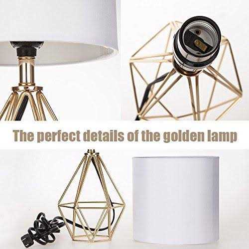 Features: Little Size:14.2 inch height,7.1 inch diameter,doesn’t take up much space,please note the size,as you can see in the picture.This delicate lamp is so cute that you don’t have to worry about any damage even if you knock it over. Bulb Requirement & ON/OFF Switch:The desk light is suitable for E26 bulb,max 60W (Buld not included). There is a switch button on the cord, press the button to turn the lamp on/off. Fantastic Design:The small nightstand lamp mixes the classical with the modern, gold hollowed out geometric base and cylinder white fabric lampshade, give you a romantic atmosphere (Easy Installation). Applications:The small table lamp takes up very little space but puts enough light to meet your practical needs for lighting or household decoration in living room corner,bedroom,study,office,dorm,kids’ room,etc.It’s stylish,works in a modern or retro style home,and is the perfect gift choice for friends, lover and family. Style Modern Color Gold Product Dimensions 7.1″D x 7.1″W x 14.2″H Light Source Type Incandescent,LED,CFL
