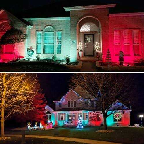 COVOART Christmas Spotlights Outdoor 18W 800lm RGB Color Changing Landscape Lights 110V Plug in LED Spot Lights with Remote