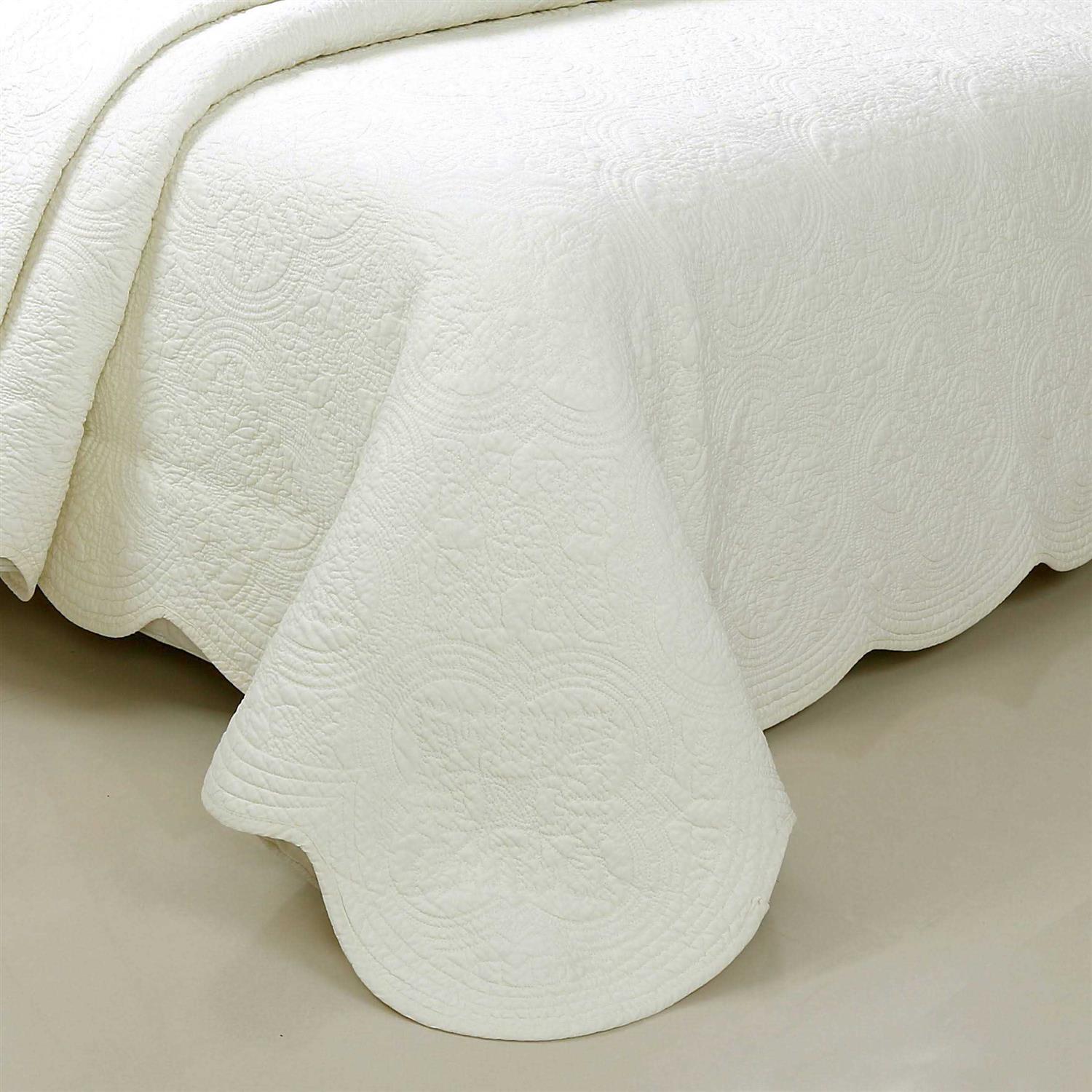Cozy Line Home Fashions Blantyre Scalloped Edge White Cotton 3-Piece Oversized Quilt Set – King