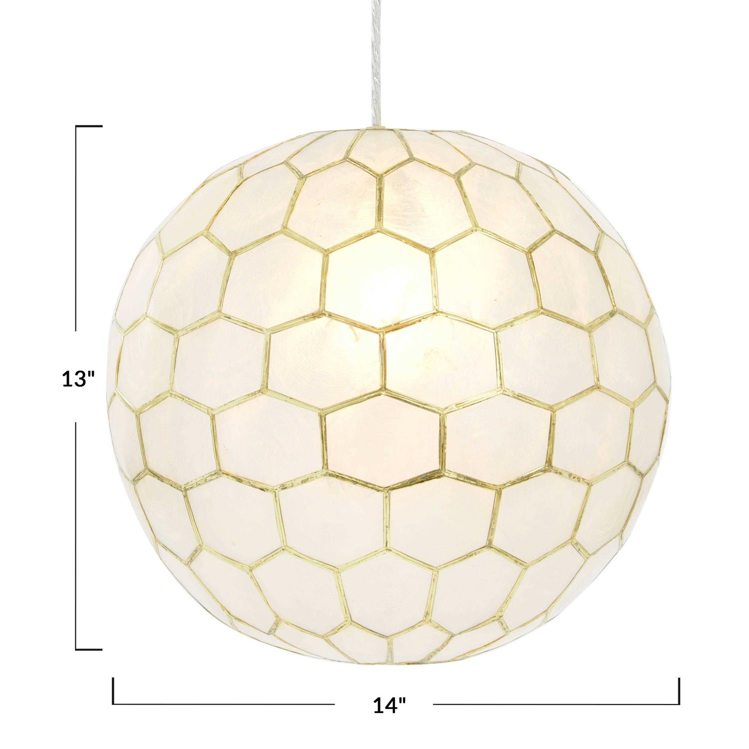 Creative Co-Op Capiz Honeycomb Globe Pendant Light Capiz White Seashells with Antique