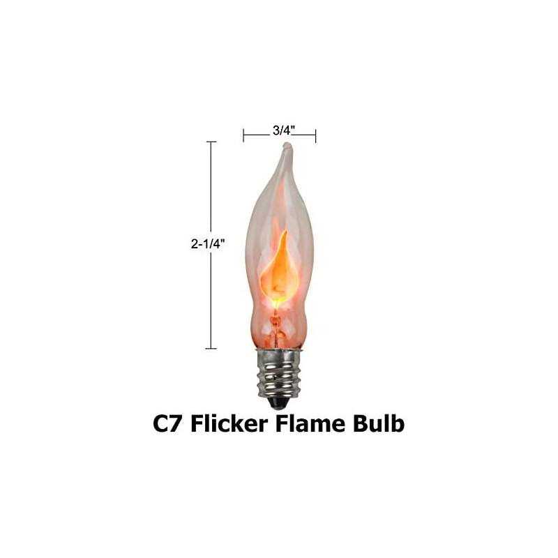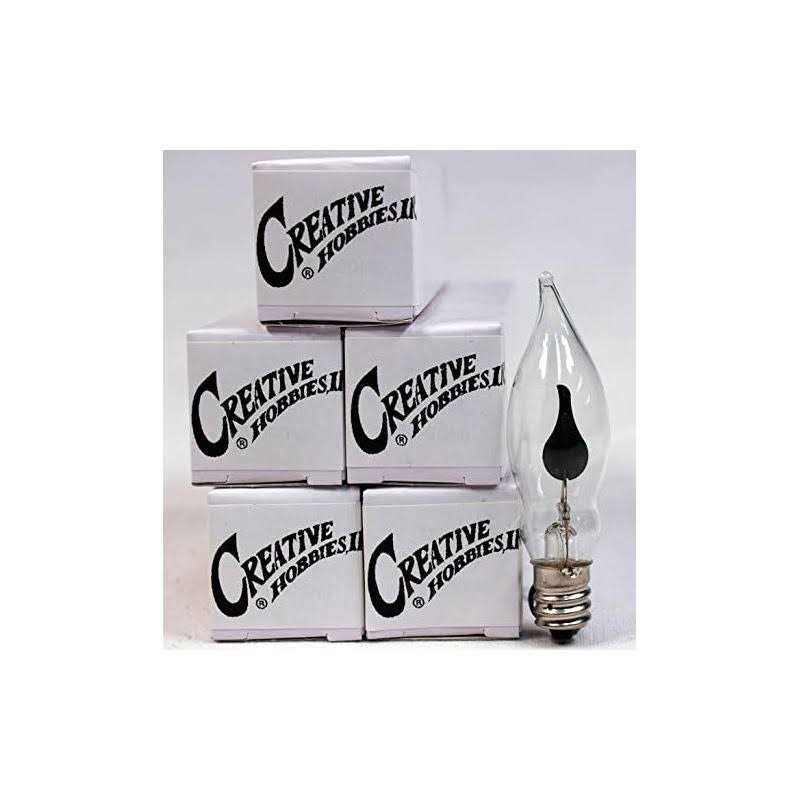 Creative Hobbies A101 Unique Flame Shaped small light bulb flickers with a soft orange glow like a real candle flame! These flicker-flame candelabra base bulbs have an orange glow that flickers and dances up and down the flame shaped filament. They look great in holiday projects, in electric candles, chandeliers, or as accents in various small craft projects. These bulbs measure only 2-1/2 inch long overall and have a small candelabra base (approx 1/2 inch diameter). Low wattage saves energy and gives ambiance and not bright light (only 3 watts). Petite size fits many applications like window candles, sconces, chandeliers (only 2.5 inch overall). Candelabra Base (E12 night light size) with nickle plated screw base for corrosion resistance.