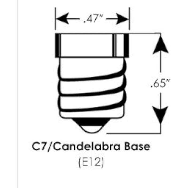 - E12 Candelabra Base (night light size) with nickle plated screw base for corrosion resistance.