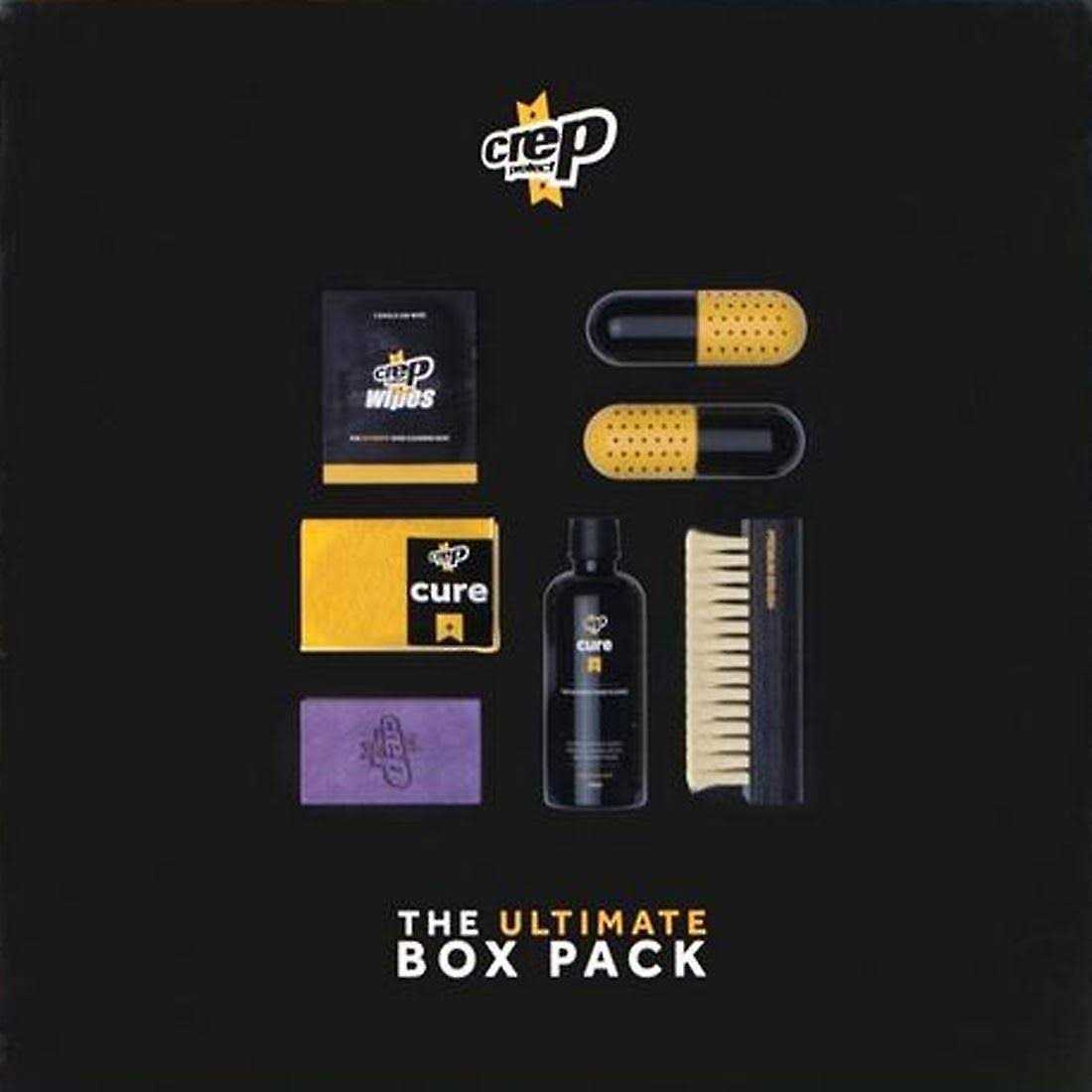 The Crep Protect Ultimate Box Pack is the ultimate set when it comes to a shoe cleaning kit. a 4 piece set that offers the greatest in shoe and trainer cleaning. Packed together nicely the Ultimate cleaning kit comes with a Crep Protect pill that eliminates odours, Cure cleaning kit that comes with a cleaning solution, microfiber cloth and brush, giving you a total cleaning solution for your footwear. Easy to use wipes for quick removal of stains and a Eraser to remove dirt and grime. Packed in individual compartments for easy access.