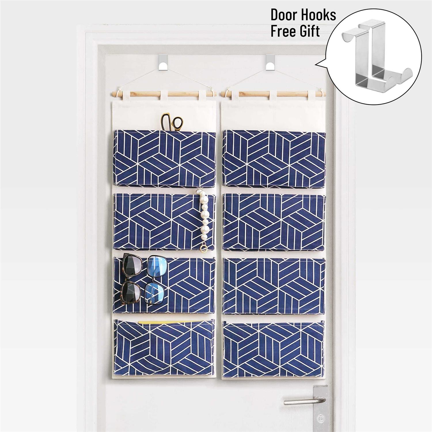 Crowned 2pcs Over Door Hanging Storage Bags Wall Mount Closet Organizer, 4 Big Pockets Linen Cotton Fabric Multi Functional Living Room Bedroom
