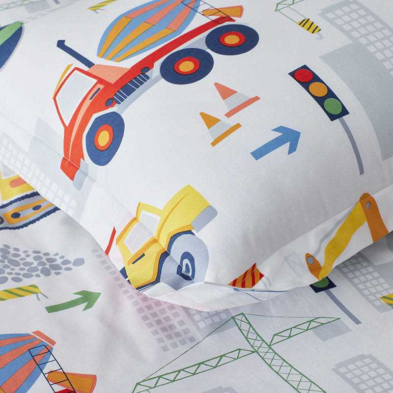 The Company Store Company Kids Construction Trucks White Multi Organic Cotton Percale Twin/Twin XL Comforter Set
