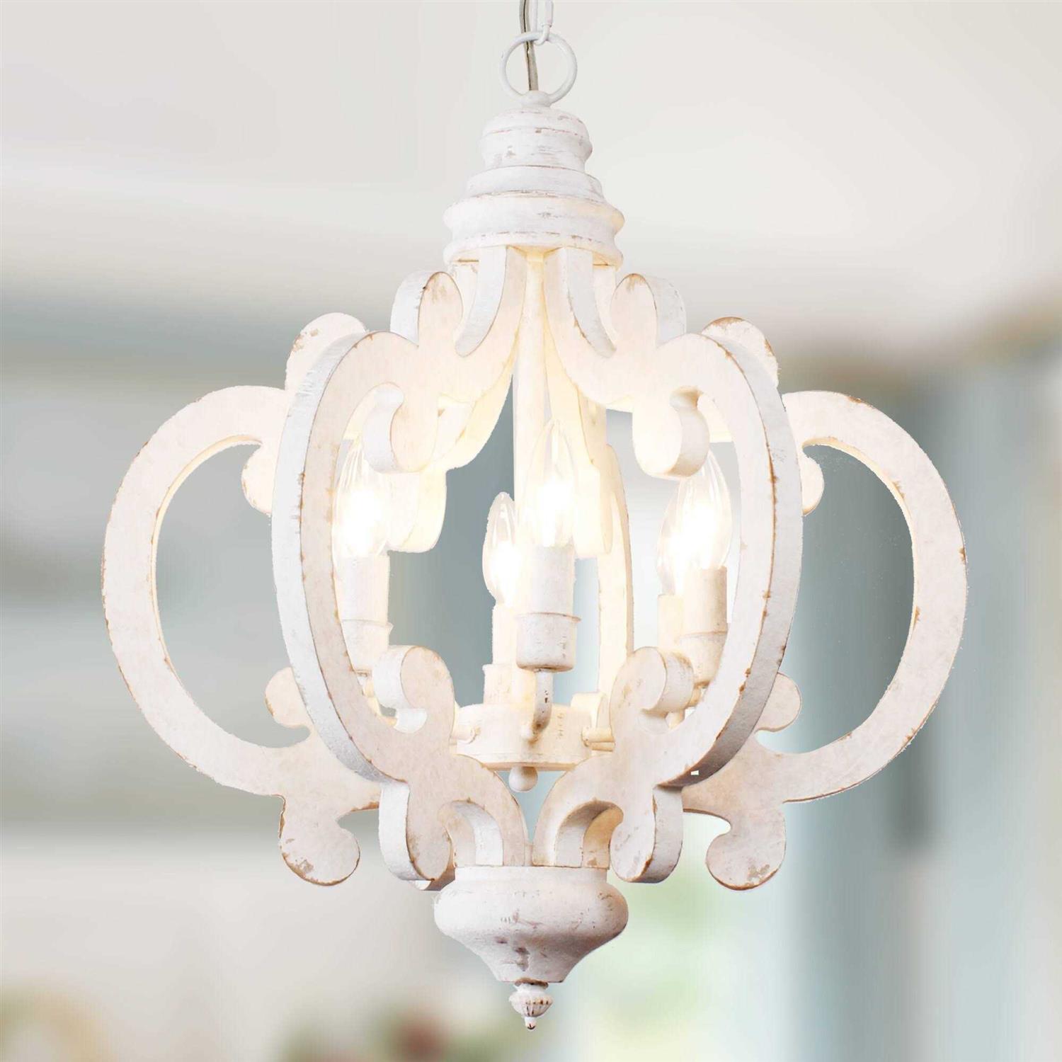 Brighten up your home space with an impressive farmhouse wooden chandelier pendant light. The craftsmanship is top notch and this chandelier ceiling light is extremely unique and beautiful! It’s just the right touch for your dining area! Light up your home space with 6 lights (not included), the brightness of the light depends on the bulb type. This chandelier is adjustable in length so you can hang it at the desired height Perfectly matched to the ceiling, ideal for kitchen islands, entryways, and dining rooms. With a farm-chic style and a choice of two-color finishes to suit most decorating styles. This is a rustic coastal lighting fixture. It would look great in a boho setting. It is of good quality and would lend a charming cottage feel to any home. Features: Made of wood and metal Vintage design with distressed antique white and weathered wood finish Crown silhouette Requires six 40-watt LED or incandescent bulbs Bulbs included: NO Dimmable UL listed for dry locations 70 inch Adjustable hanging height Sloped ceiling adaptable Hardwired This fixture requires hardwiring and professional installation is recommended. Dimensions: Overall: 24.4 inches height x 18 inches wide Canopy: 1.3 inches height x 4.7 inches wide Wire/chain length: 70 inches Adjustable