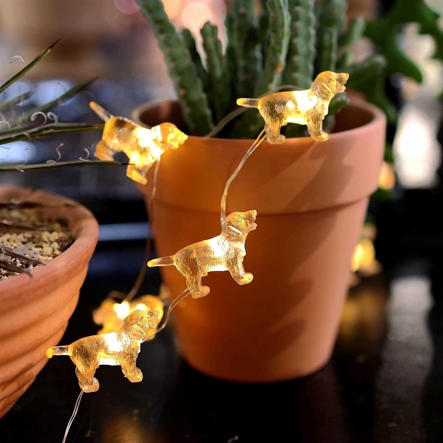 【3D Puppy, Rich Details 】THREE DIAMENSIONAL dog lights, Not Flat on one side. Small but full of details, delicate and cute decoration. Light up from inside, give off warm amber light, decorate it many ways, endless possibilities. The copper wire is flexible, which could provide rigidity in the string lights allowing you to position each of the stars the way you want. 【Use in A Variety of Scenarios】It services as a unique night light in bedroom. It gives off soft amber light. It makes great birthday gift, wedding decoration, holiday additional. 【USB Plug In or Battery Power 】This product comes with two power options, USB plug in or Battery box. You can either power the light via charger or 3 AA batteries to make it portable. Save money or use it somewhere no outlet is near around. 【Wireless Remote Control with multiple Timer and Flash Setting】 With the timer function on remote control, you could let this Light up Fall themed cute string light turn on the same time very day, and turn off in 6 hours, then on again the same time the next day. Remote is included in the box. CUTE DESIGN ON A WELL-MADE STRING! br / br / They will make your party more interesting more characteristic! It could be perfect decoration for summer garden, front door, fireplace, patio, or office cell decoration br / br / Our icon is 3D molding. Our lights are designed and made with precious and care. br / br / Our icon could be very good decoration both when they are on and off during the daytime! br / br /