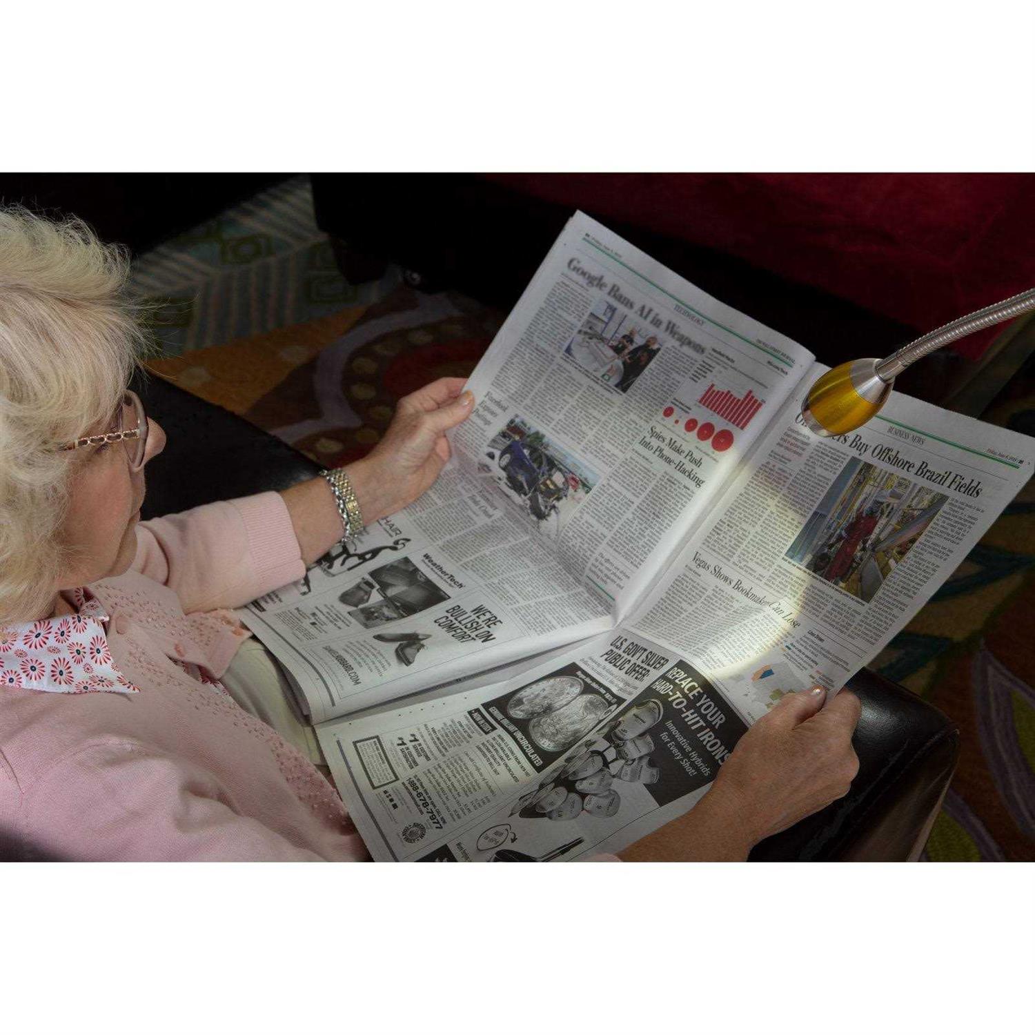 The Focused Beam Natural Light Floor Lamp has an adjustable shade that projects light in 711 different diameters from 3″ to 31″. Whether you’re reading, crafting or enjoying your favorite hobby, the adjustable beam provides just the right lighting to concentrate and see clearly. An energy-efficient, clarity enhancing 5W LED bulb produces crisp white light that’s over 7X brighter than a 60W incandescent bulb (at 12″). Features a steel base/pole, anodized aluminum shade with and a 15.5″ gooseneck.