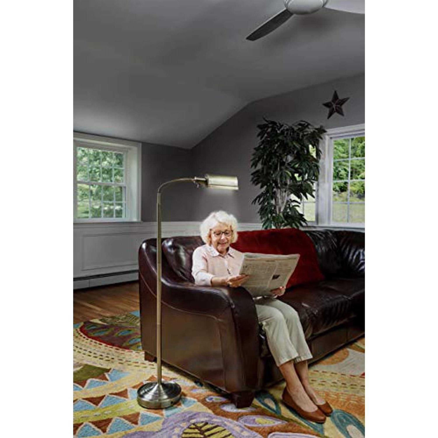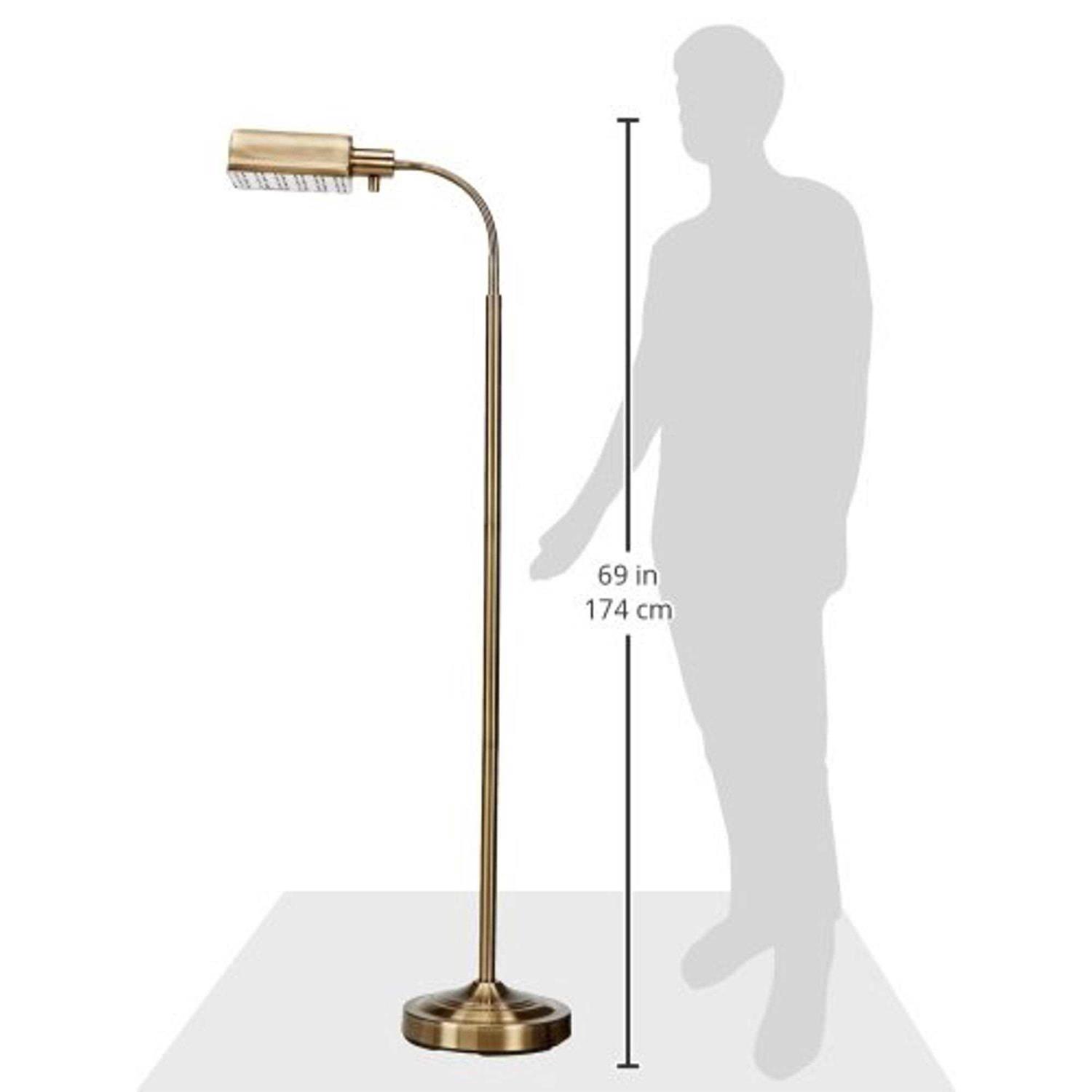 Now you can put a floor lamp anywhere you need one. The 56 Cordless Floor Lamp is everything you need in a reading lamp handsome looks, adjustable gooseneck, heavy weighted base, dimmer switch and a ring of 30 LEDs that simulate natural daylight. Plus, it’s totally wireless, operating on one set of batteries for up to 33 hours continuously. Available in antique brass finish.
