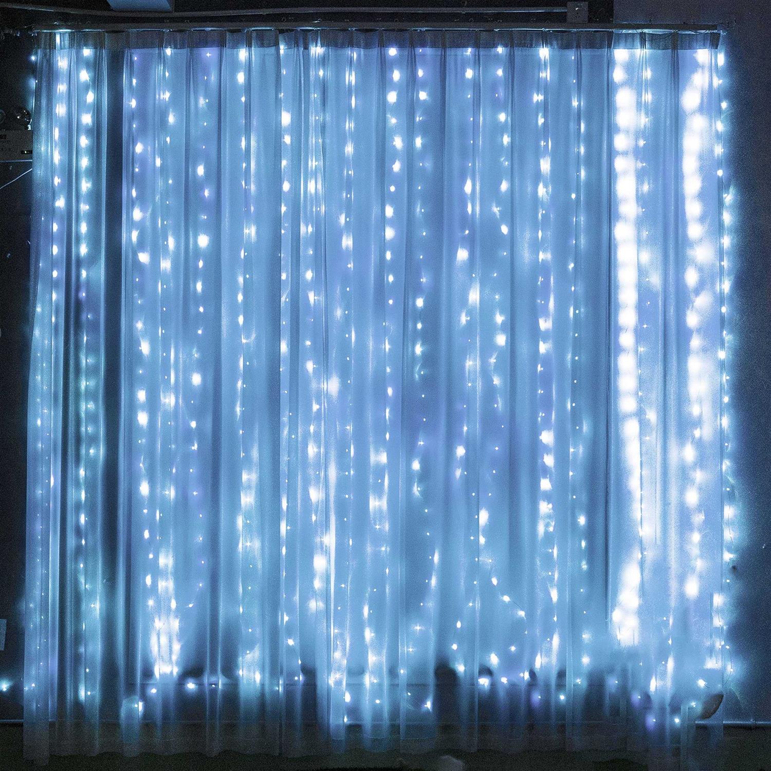 ROMANTIC AND BRILLIANT LIGHTS: Dazzle Bright fairy lights has 300 LED lights, It can shine your party, and create a romantic and a festival atmosphere. It is the first choice for decoration for parties, Halloween, Valentine’s Day, festivals and other occasions. For indoor and outdoor use, It is a wise choice that choose it to decorate bedrooms, curtains, bushes, terraces, balconies, etc. Illuminate your garden, attract neighbors to visit, and enhance the relationship between neighbors. 8 MODES TO CHOOSE: Dazzle Bright curtain string lights has 8 lighting modes including Combination, In waves, Twinkle/Flash, Slow Glow, Chasing/Flash, Slow fade, Steady on, Sequential. Beautiful and practical, different modes can meet your needs for different atmospheres. PREMIUM AND SAFE: LED wall lights work with low voltage. It is safe to touch and will not overheat for a long time use. Comfortable warm white light is USB powered, and easy to use. WATERPROOF & ENERGY EFFICIENT: Dazzle Bright curtain string lights are waterproof, even in rain and water spill, it still works normally. And the LED lights is extremely energy efficient, work longer with less electricity. Dazzle Bright Window Curtain String Lights /b br br Specification: br Light Color: /b White br LED Count: /b 300 pcs br Size: /b 9.8 * 9.8 FT br Leading Wire: /b 8.2 FT Intervals Between hook: /b 0.9 FT br Intervals Between light:v 0.33 FT br Waterproof Level: /b IP44 br Power Supply: /b USB operated br Package: /b 1 x 300 LED window curtain string lights br