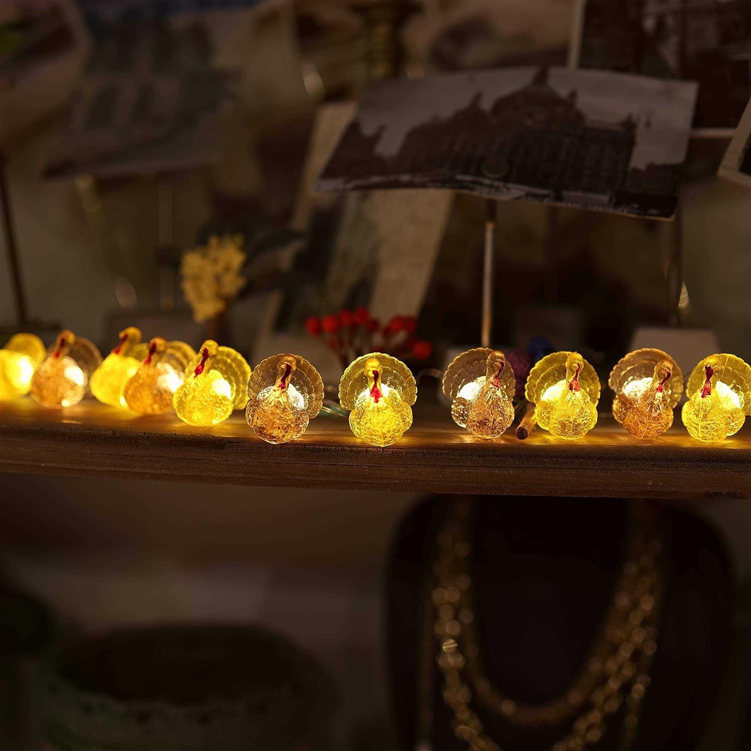Decorative Fairy Mini Turkey String Lights Autumn Garland Cute Novelty Fall Lights 20 Leds 8ft Usb or Battery Operated for Thanksgiving Centerpiece