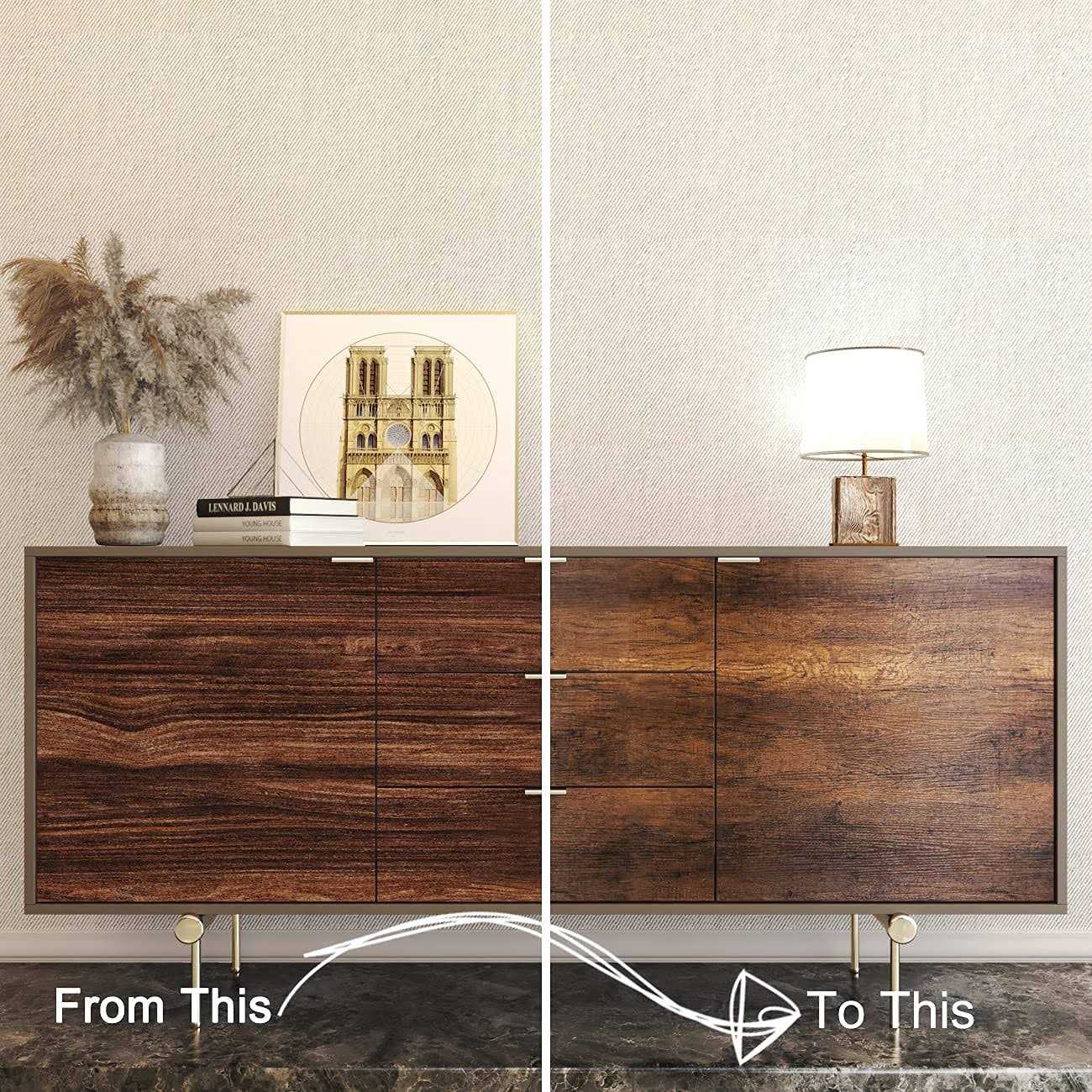 - FEATURES: Contact paper wood is made of high-quality vinyl material, which is peel and stick, self-adhesive, waterproof, and removable.