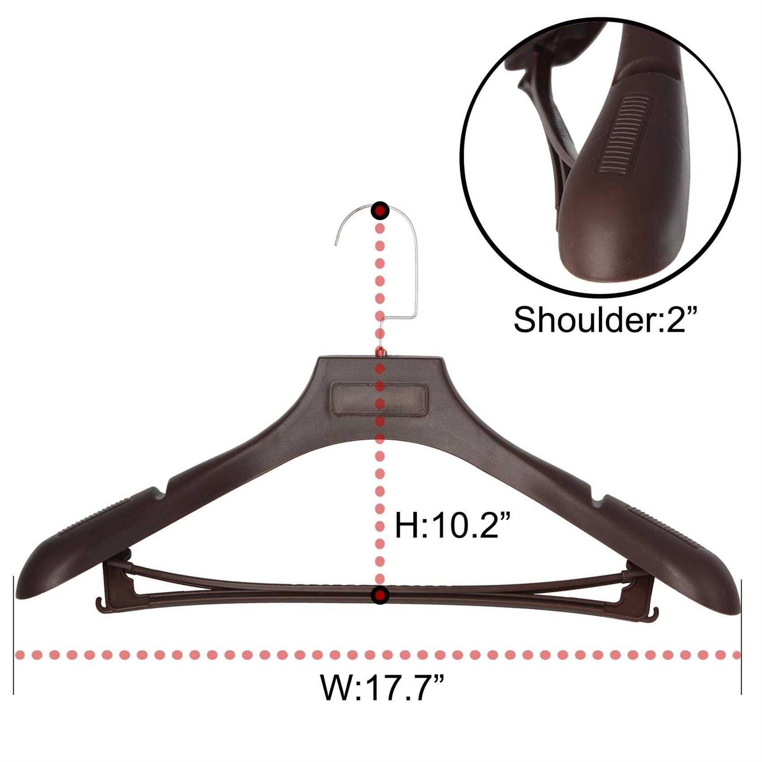 Plastic Extra Wide Suit Hangers, Pack of 15, Width: 17.7″,Notched Shoulders & Swivel Hooks, Brown