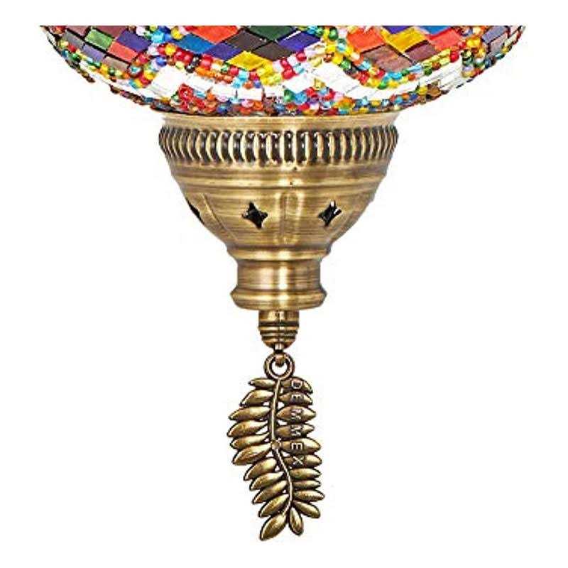 Brand: DEMMEXColor: Pink & RedFeatures: Turkish Moroccan Mosaic Plug In Ceiling Hanging Pendant Light. Hangs : About 26″. Made in Turkey for US Use. Globe Diameter : 6.5″. On/Off Switch. Needs E12 Candelebra Bulb. (NOT Included). Material : Glass & Hand Cut Glass Pieces and Glass Beads. Body & Chain Color : Antique Brass Details: Turkish Moroccan Mosaic Plug In Ceiling Hanging Pendant Light. Made in Turkey. Hangs : About 26″. Globe Diameter : 6.5″. On/Off Switch. Needs E12 Candelebra Bulb. (NOT Included). Material : Glass & Hand Cut Glass Pieces and Glass Beads. Body & Chain Color : Antique BrassPackage Dimensions: 17.2 x 5.6 x 0.4 inches