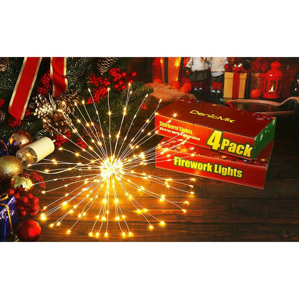 Denicmic 4 Pack Firework Lights Led Copper Wire 8 Modes Battery Operated Hanging Ceiling Starburst Fairy Remote Control Star Sphere Lights Indoor