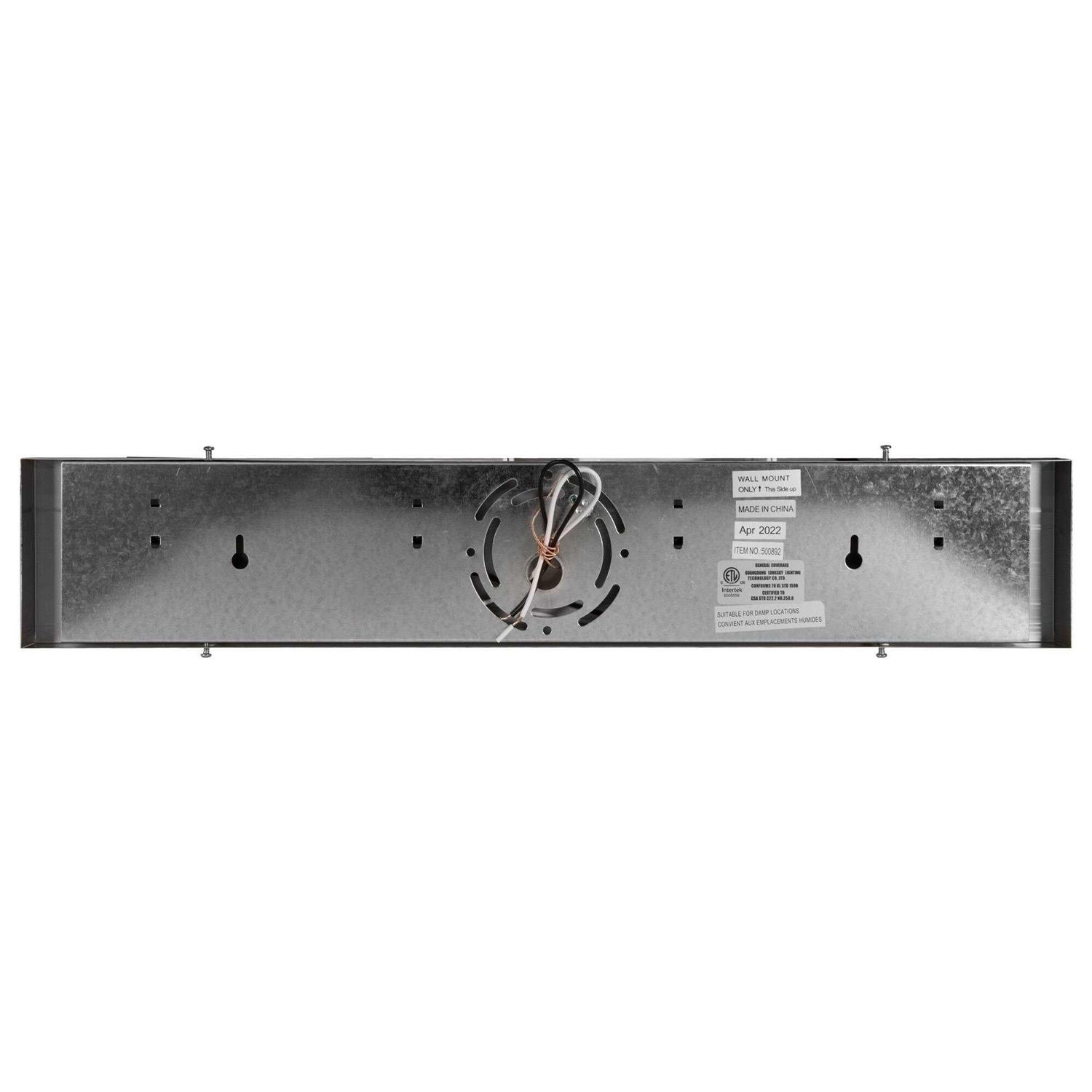 The Design House Village 4-Light Vanity illuminates your bathroom with its timeless configuration and bright aesthetics. This fixture is constructed of formed steel with a polished chrome finish and uses (4) 60-watt medium base incandescent bulbs. This wall mount’s petite design mounts seamlessly to the wall without a chain or visible wires. This fixture can easily be paired with traditional furnishings and mimics the classic Hollywood design. Measuring 4.3-inches (H) by 24-inches (W), this 2.48-pound vanity can be mounted facing up or down depending on location and preference. This vanity is UL listed, cUL listed and approved for damp areas and is rated for 120-volts.Dimensions – 1.97 x 24.00 x 4.33 in.Item weight – 3.44 lbs.