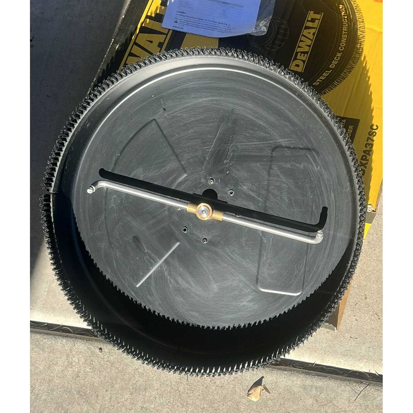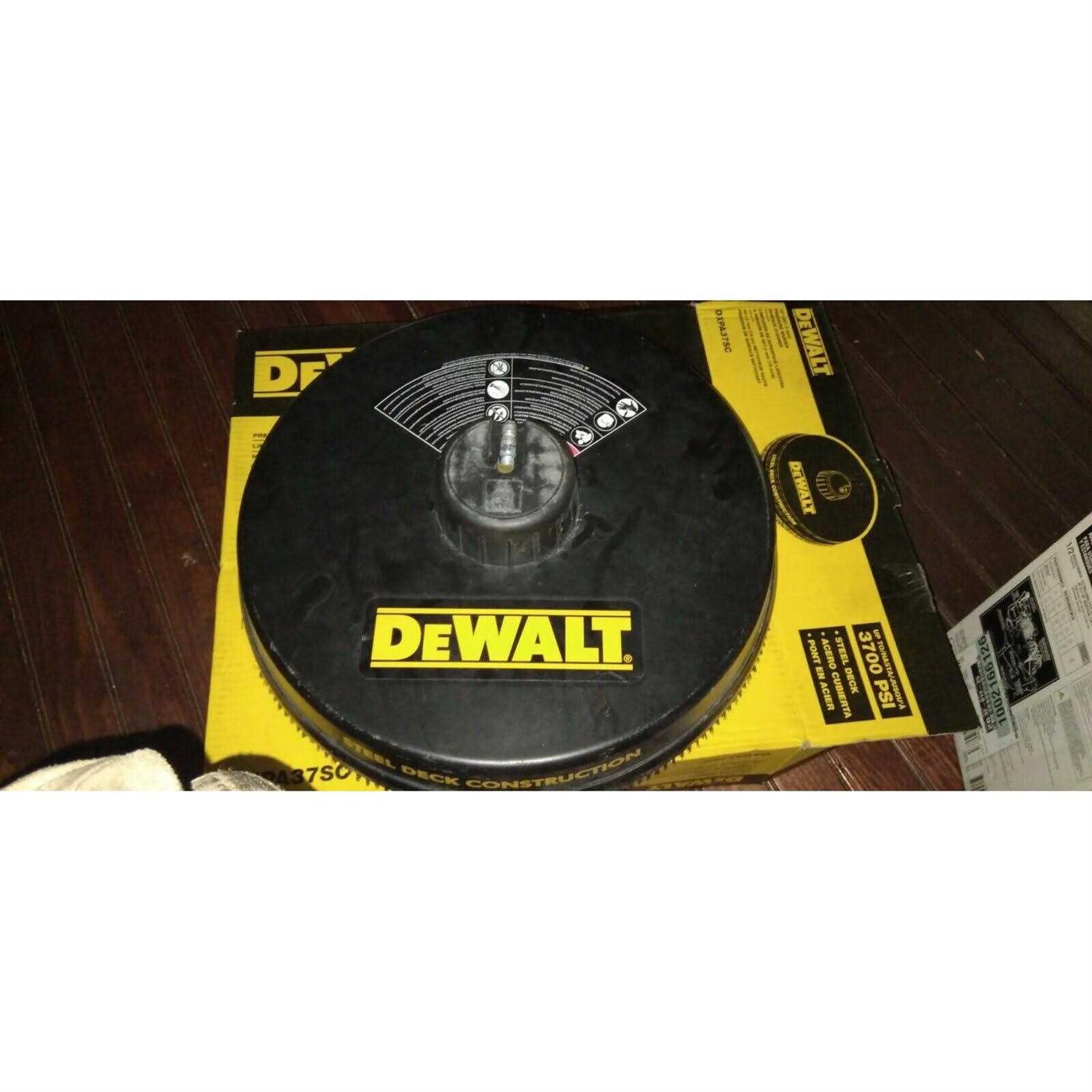The DEWALT Surface Scrubber is used for cleaning garage floors driveways patios decks sidewalks and more. Dia allows you to cut cleaning time in half on those big jobs. For use with cold water pressure washers rated up to 3700 psi this unit features high-pressure jets that are great for working near surfaces that you do not want to get wet. This surface cleaner is made out of high quality steel and uses high-pressure rotating jets for a thorough clean that are fast and streak free. The spinning jets help to remove dirt and grime from surfaces with ease.