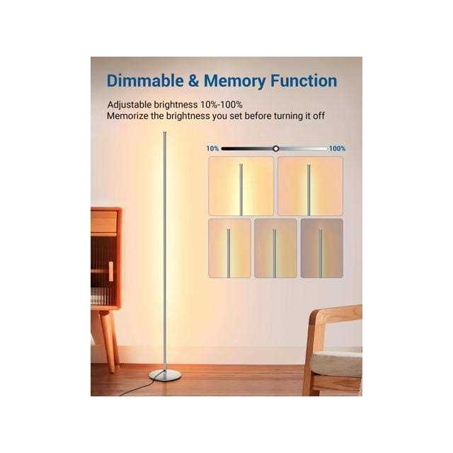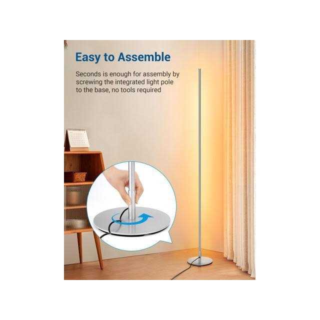 The LED floor lamp features over 30,000 hours long life with normal use. Never replace a bulb and energy saving. It will never overheat and stays cool to touch so that you can avoid accidental burns if moving the corner lamp. – Adjust the brightness from 10-100% to provide comfortable light, the floor lamp is gradually dimmable, allowing you to customize the brightness according to life or work needs. – And the corner lamp can remember the pattern you set up before closed. – This small lamp doesnt take up much space. Just put this standing lamp beside a corner or a couch, showing a refined and modern interior design. – Made of high-quality aluminum, has a slender stem with a weighted but compact lamp base, heavy chrome metal base plate keeps the lamp sturdy in place and wobble free, stable and durable, so prevents the lamp from tipping over when you move it or happen an accident.
