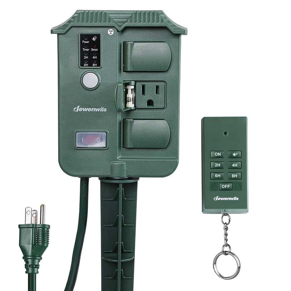 DEWENWILS Outdoor Power Stake Timer Waterproof 100FT Wireless Remote Control