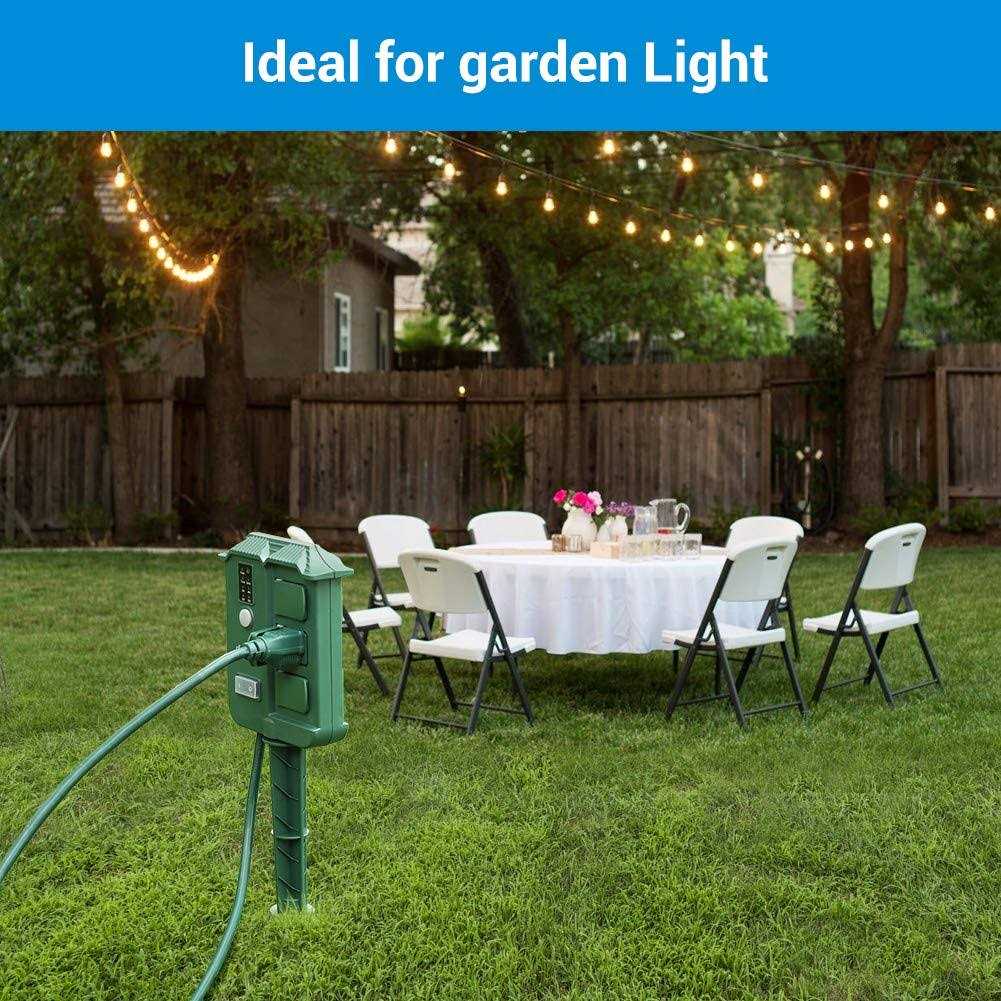 The outdoor yard stake timer can turn off/on lights and other home electric appliances automatically to eliminate wasteful standby power, save energy and reduce your electricity bill.
