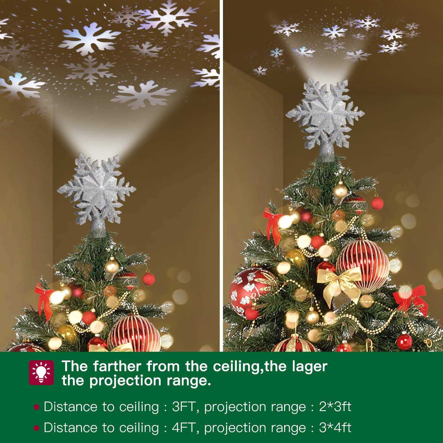 DG-Direct Christmas Tree Topper Lighted with Silver Snowflake Projector, LED Rotating Magic Snowflake, 3D Hollow Glitter Lighted Silver Snow Tree