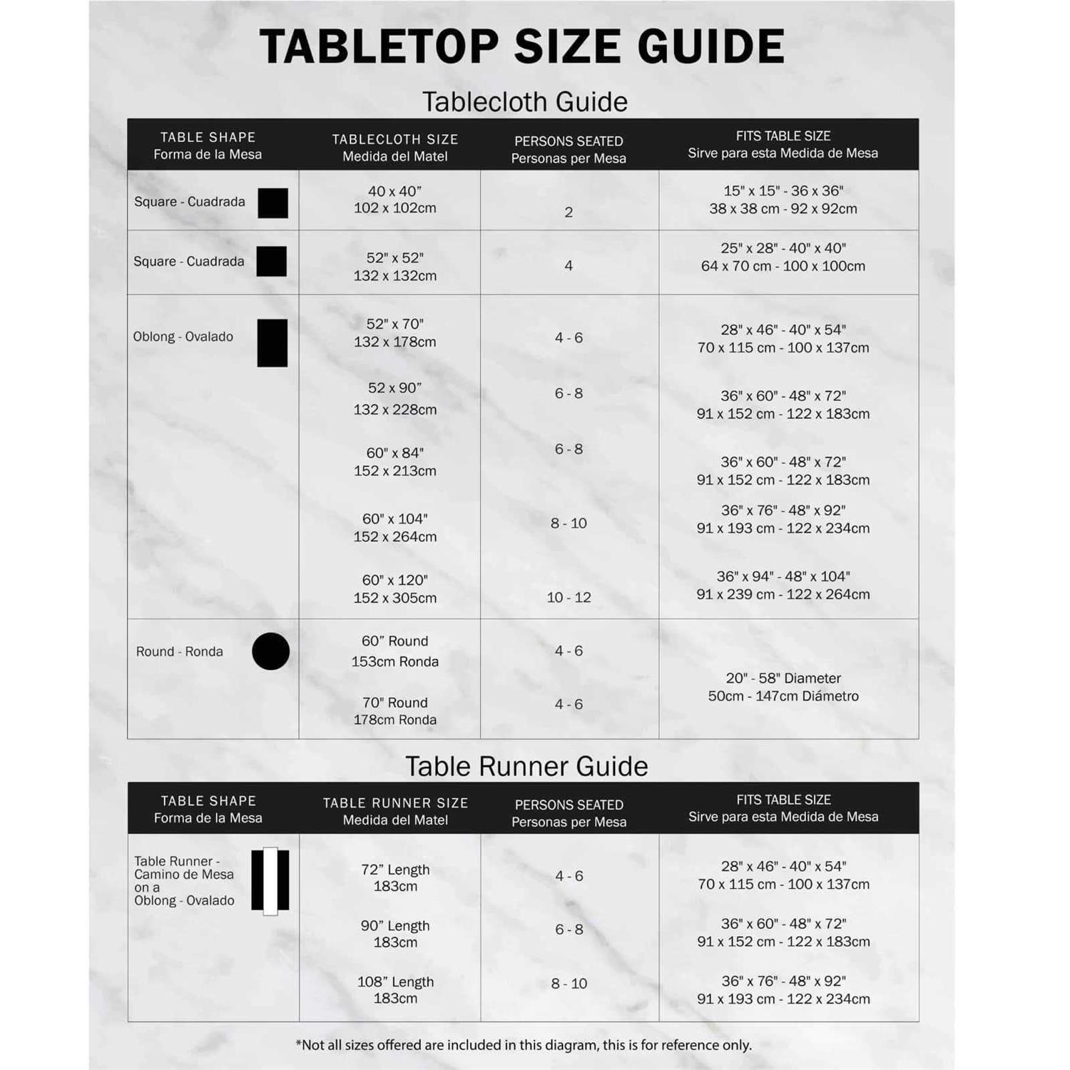 - Tablecloth seats 4 people, see tablecloth size chart in images to decide on size needed