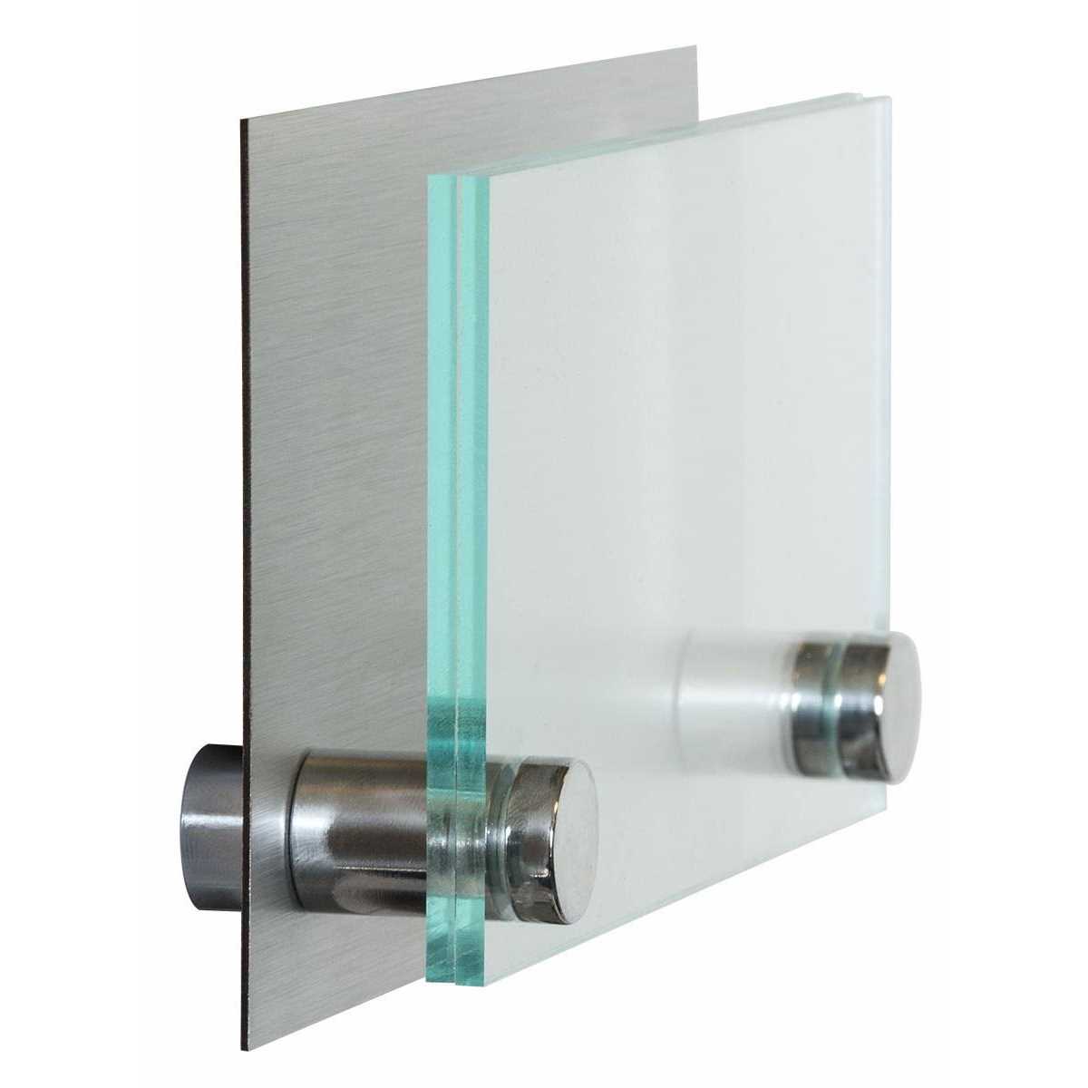 This 6 x 3 sign comes with acrylic plates and a brushed aluminum backer creating a professional look. You can create custom graphics for the sign. Included in the purchase are three frosted and three clear printable film sheets. The sign is held together with two chrome standoffs which make this sign easy to change if needed.