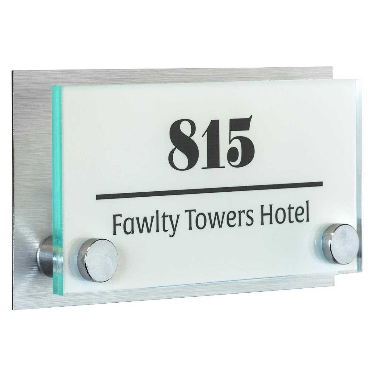 Displays2go Office Door Sign with Brushed Formica Backing and Mounting Hardware