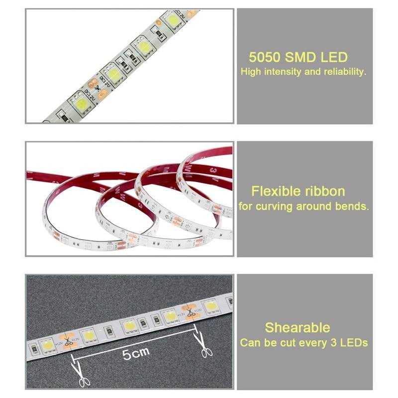 • [ENERGY SAVING] – Low Power Consumption, Long Life Span 50,000 Hours. Flexible Ribbon for Curving Around Bends. Working Voltage: 12v Dc.