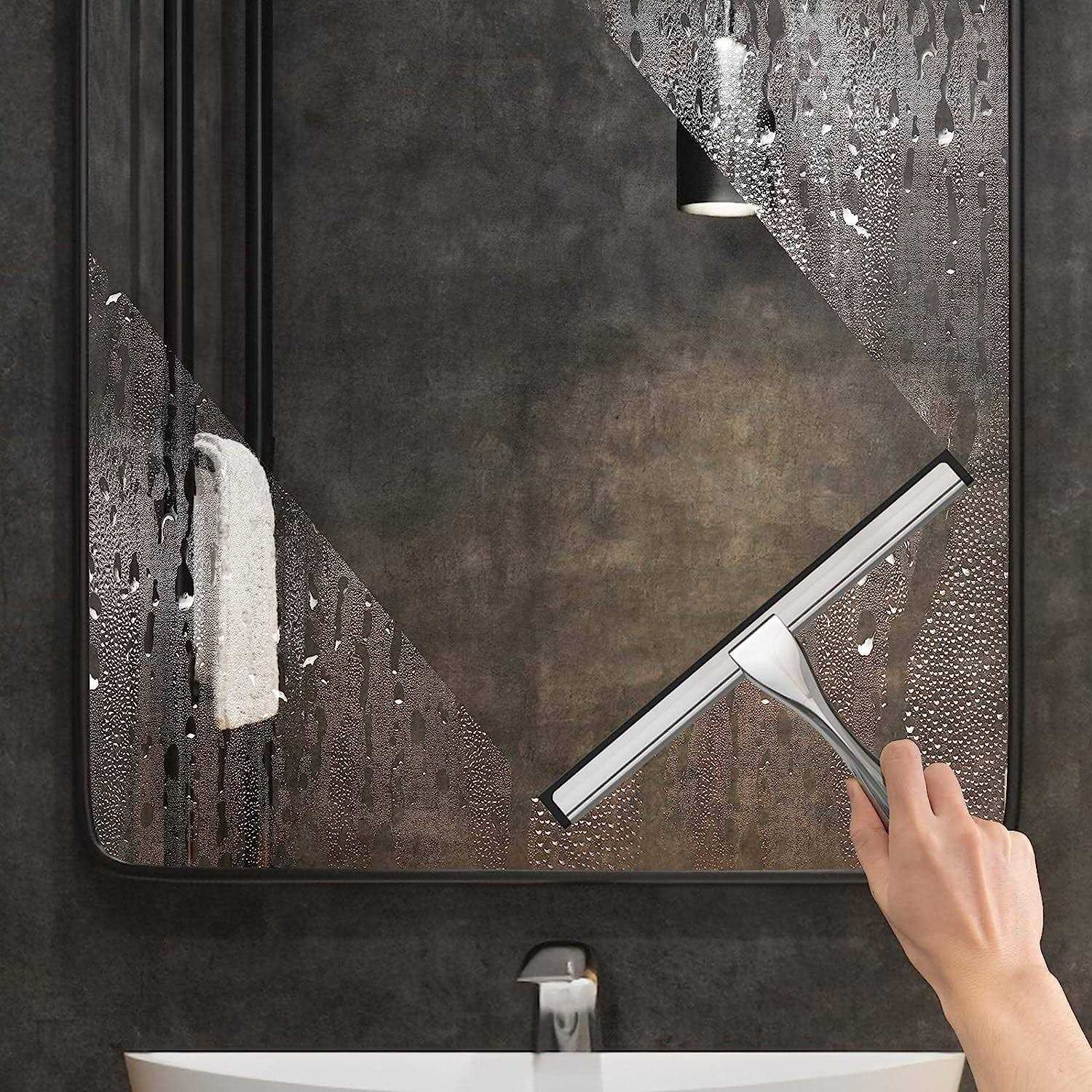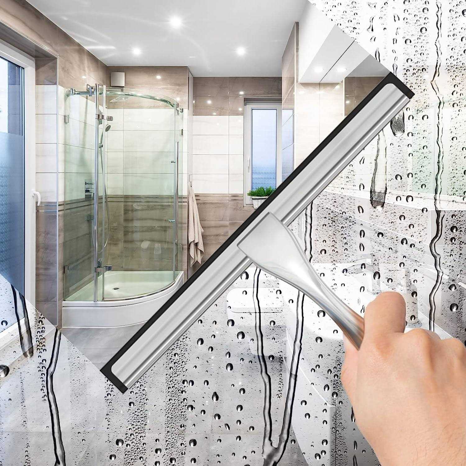 Docrok All-Purpose Stainless Steel Shower Squeegee for Shower Doors with 2 Adhesive Hooks Bathroom Cleaner Tool Household Window Mirror Squeegee for H