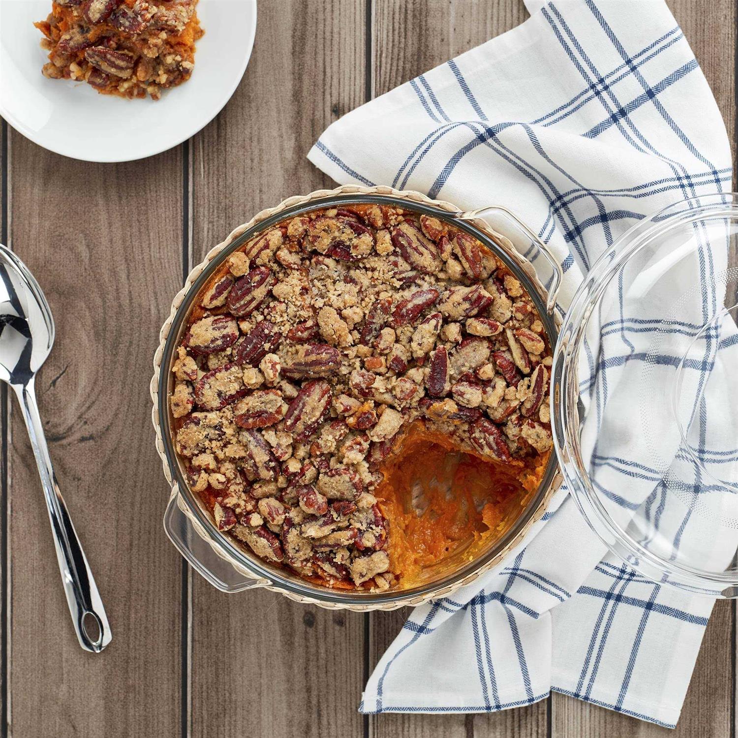 Closeout. Serve up your favorite meals in style with Dolly Parton’s covered glass casserole dish and wicker basket set, featuring durable borosilicate glass that is safe to use in the freezer, microwave, oven and dishwasher.