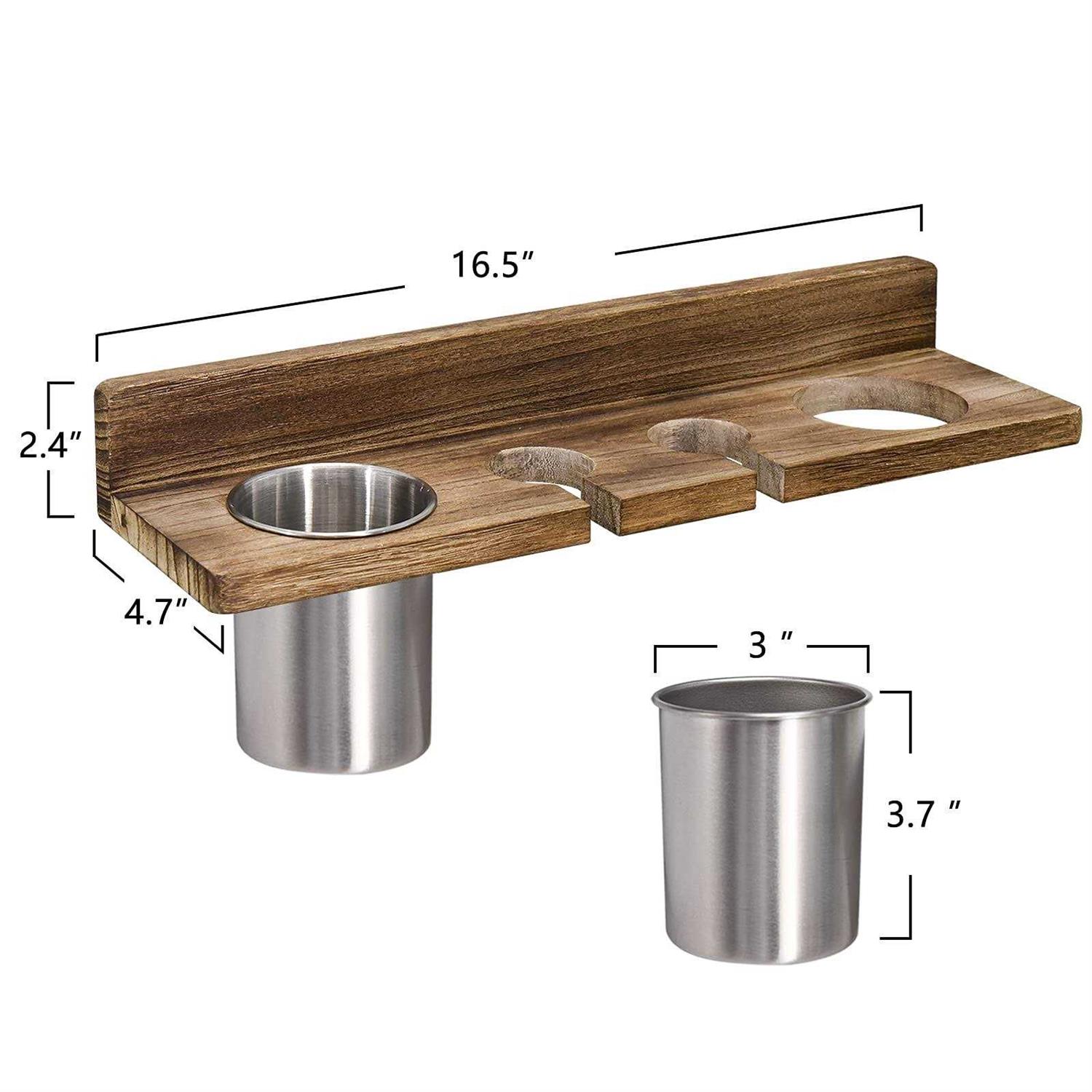 STORE YOUR HAIR TOOLS : Our hair dryer holders are divided into four compartments, they can store different hair tools. In three compartments you can storage for hair dryer and curling iron. This hairdryer holder for bathroom wall is made of high-quality wood and durable metal cups, which are sturdy and durable enough to meet your daily needs. Metal cups can be taken out to clean, and they also provide a safe place to cool down hair tools quickly. Since your tools could expose to air so they could easy to cool naturally, which could prolong your tools’ life. RUSTIC AND UNIQUE DESIGN : With this hair accessories organizer’s thoughtful design, showcasing natural wooden patterns, fine lines and smooth edges.This wall mounted hair care and styling tools organizer is designed in the Minimalist genre, which could match to both modern, farmhouse and industrial styles home. The stylish rustic surface will be a great touch to any room and will make a massive difference to the dressing table, Which is a great gift for anyone you love.